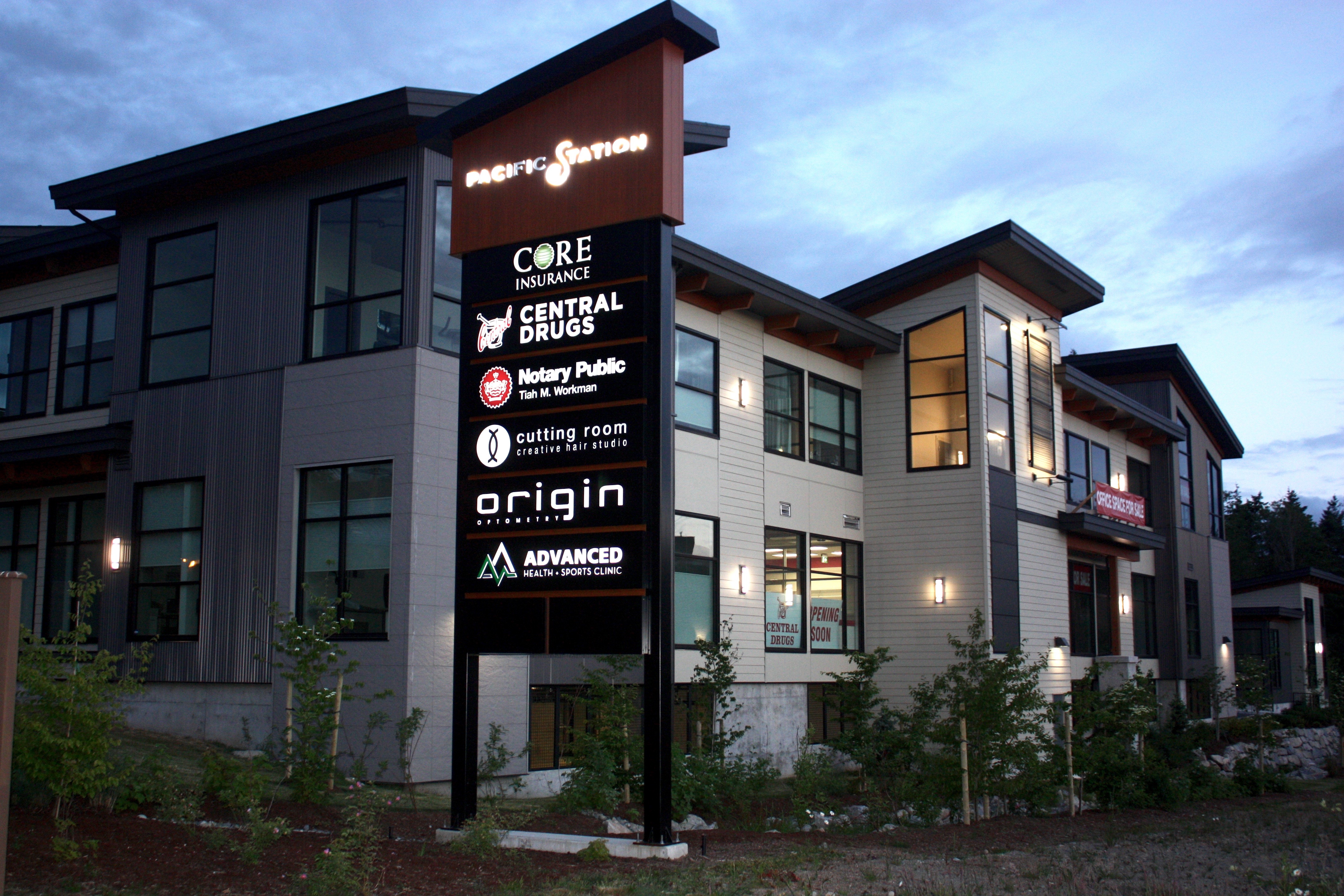 Pacific Station is an innovative, forward-thinking, mixed-use, multi-phase development that includes 5 uniquely designed buildings containing 50,000 square feet of prime commercial office space. Strategically located, the commercial component represents the emerging business centre for the increasingly independent North Nanaimo community, offering professionals practices a prestigious address in the ideal location to cater to the higher income demographics in Nanaimo’s north end. This is a rare opportunity to benefit from the synergies of locating in a thriving business community in the heart of North Nanaimo’s urban core.