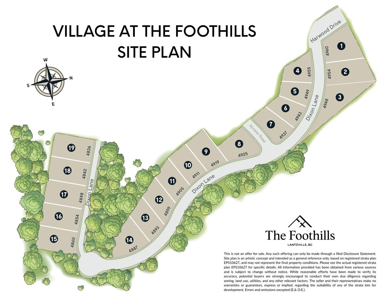**This is not an offer for sale. Any such offering can only be made through a filed Disclosure Statement. All information provided has been obtained from various sources and is subject to change without notice. While reasonable efforts have been made to verify its accuracy, potential buyers are strongly encouraged to conduct their own due diligence regarding zoning, land use, utilities, and any other relevant factors. Images and renderings are for illustrative purposes only. All future development plans within the Foothills community are subject to change. The Developer reserves the right to re-design future components and stages of the Foothills Community, and at the Developer’s sole discretion, may decide not to proceed with one or more of the developments within the Foothills Community or any other aspect of the Foothills Community, including but not limited to residential development, commercial development, including the future Village, and any other amenity or component of the development. The seller and their representatives make no warranties or guarantees, express or implied, regarding the suitability of any of the strata lots or lots for development. Errors and omissions excepted (E.&O.E.).