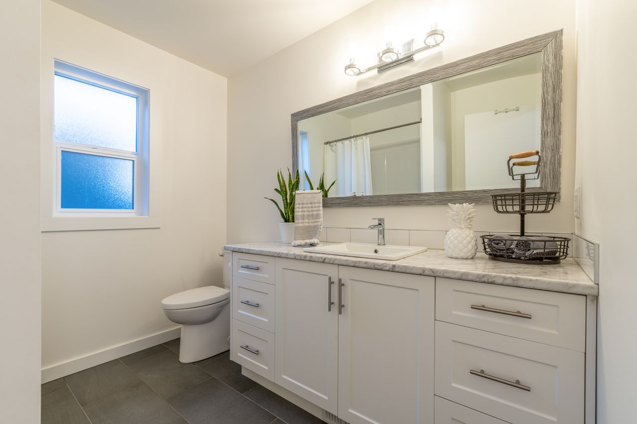 Three bedrooms are offered on this family-friendly main level including the primary suite comprising a walk-in closet conveniently located off the spacious four-piece ensuite, while a four-piece family bathroom rounds off this floor. Downstairs provides a fourth bedroom or rec room for the primary residence along with laundry facilities, access to the double garage, and the suite.