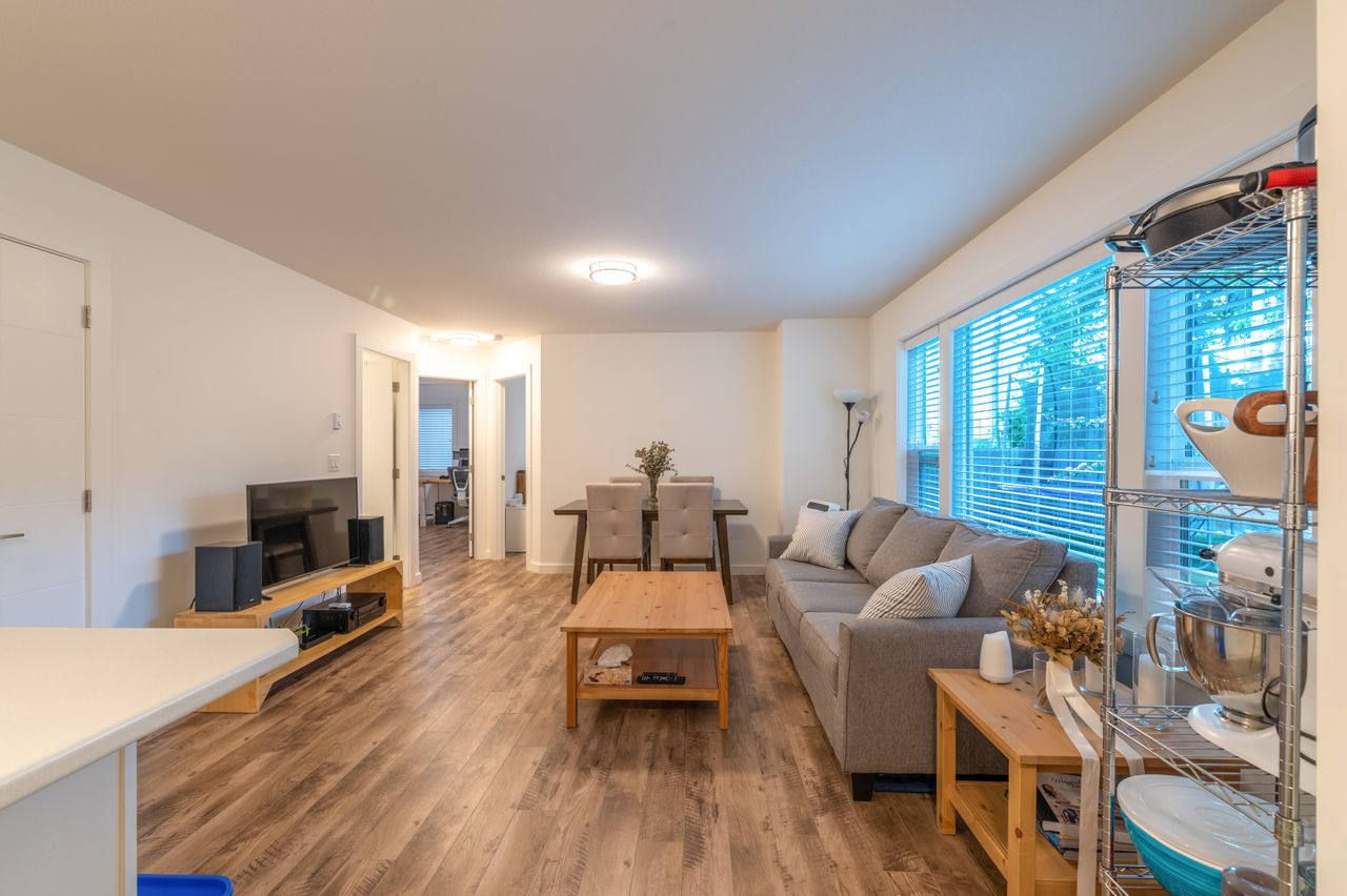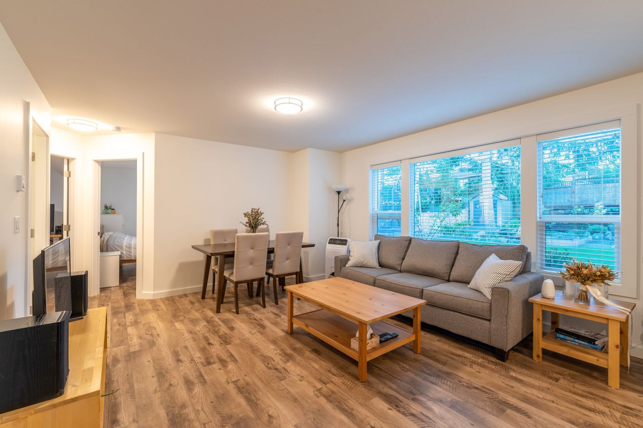 Boasting large windows that overlook the garden and allow in lots of natural light, the nicely-finished suite has an open concept living/dining area, a well-appointed kitchen with stainless steel appliances, and lots of counter space, two spacious bedrooms, and a four-piece bathroom. Laundry facilities complete this space while a separate entrance and a covered patio afford the tenants and homeowners alike some privacy.