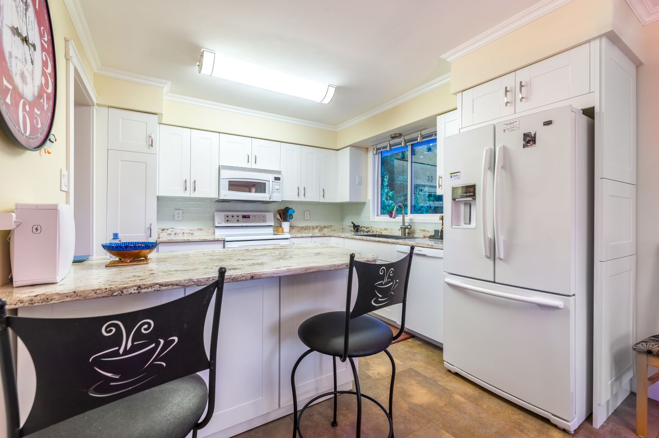 Once inside, you will appreciate the comfortable living space with a large picture window and engineered maple hardwood flooring, an updated kitchen with crisp, white shaker cabinetry and a convenient eating bar, and an adjoining dining area, the perfect spot to gather for an evening meal. A sliding door from this area provides access to a spacious side deck, an extension of the living space for family and friends in the warmer months, and on to a lower deck at the rear of the home, offering a private spot overlooking the garden for your morning coffee. Completing this floor, the primary bedroom boasts cheater ensuite access to the main 4-piece bathroom with updated fixtures and fittings, while a second bedroom is only steps away.