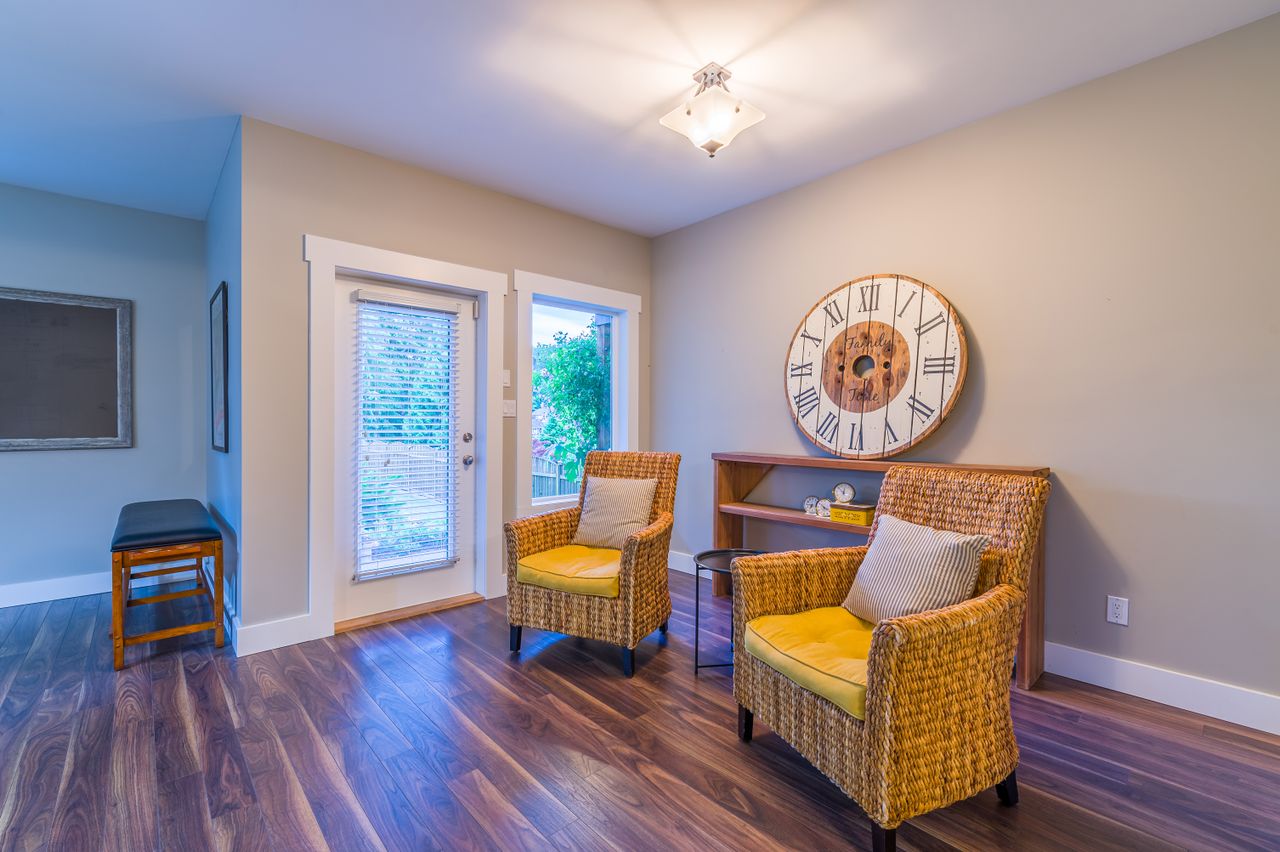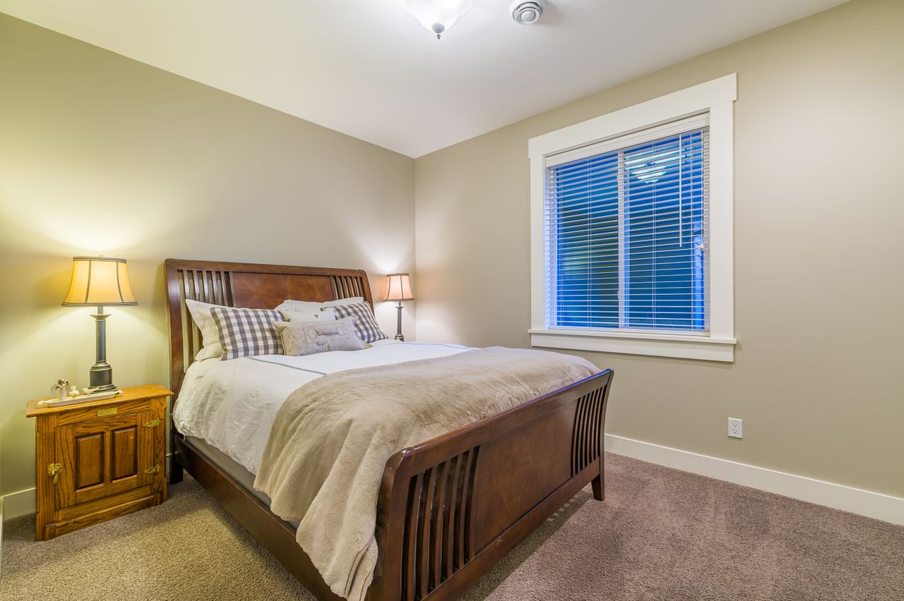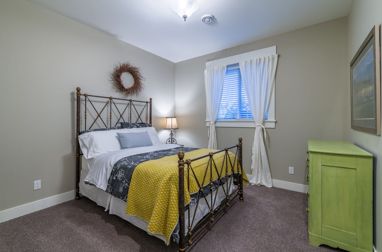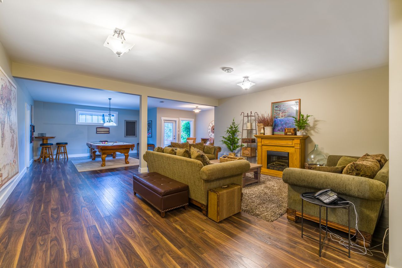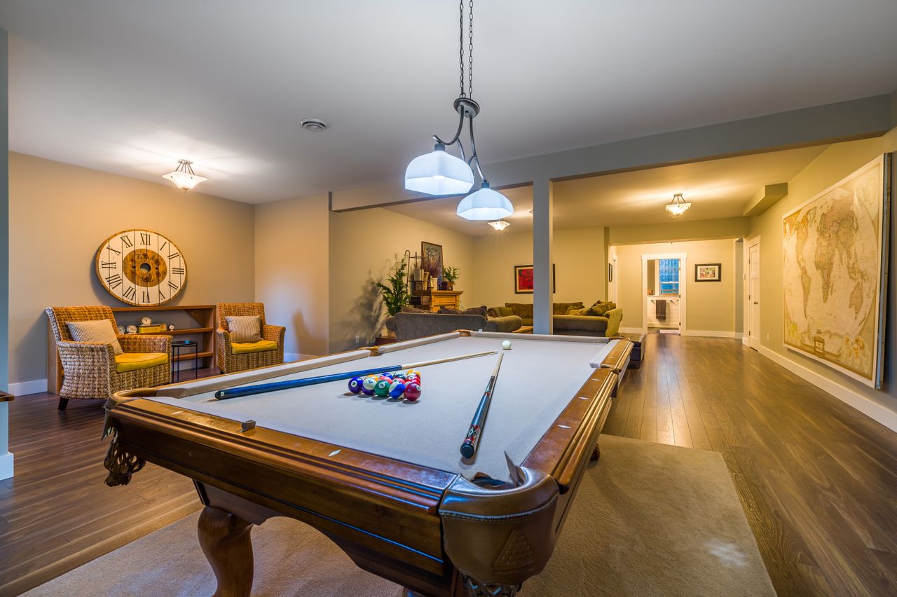 Down the hall from the living area is the primary bedroom complete with a walk-in closet, a spa-like 5-piece ensuite featuring a large walk-in shower and separate bathtub, and convenient access to the balcony for your morning coffee. There are two additional bedrooms on this family-friendly main level while a tasteful 4-piece bathroom and laundry facilities round off this floor and lead to the bonus recreation room on the upper level. A cozy, bright space, this would serve well as a den or an office and could also be a handy spot for overnight guests.