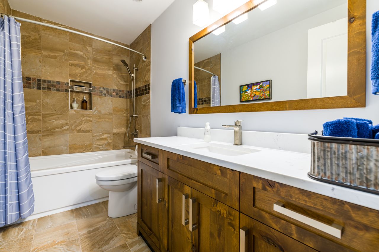 The bedrooms are separated, providing an element of privacy for the new homeowners and their guests, with the second bedroom and 4-piece bathroom located off the entrance, and the primary suite off the living area complete with access to the smaller balcony, a walk-in closet, and a spa-like 5-piece ensuite with soaker tub and a spacious walk-in shower.