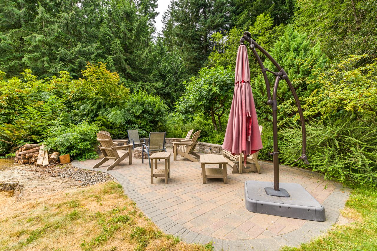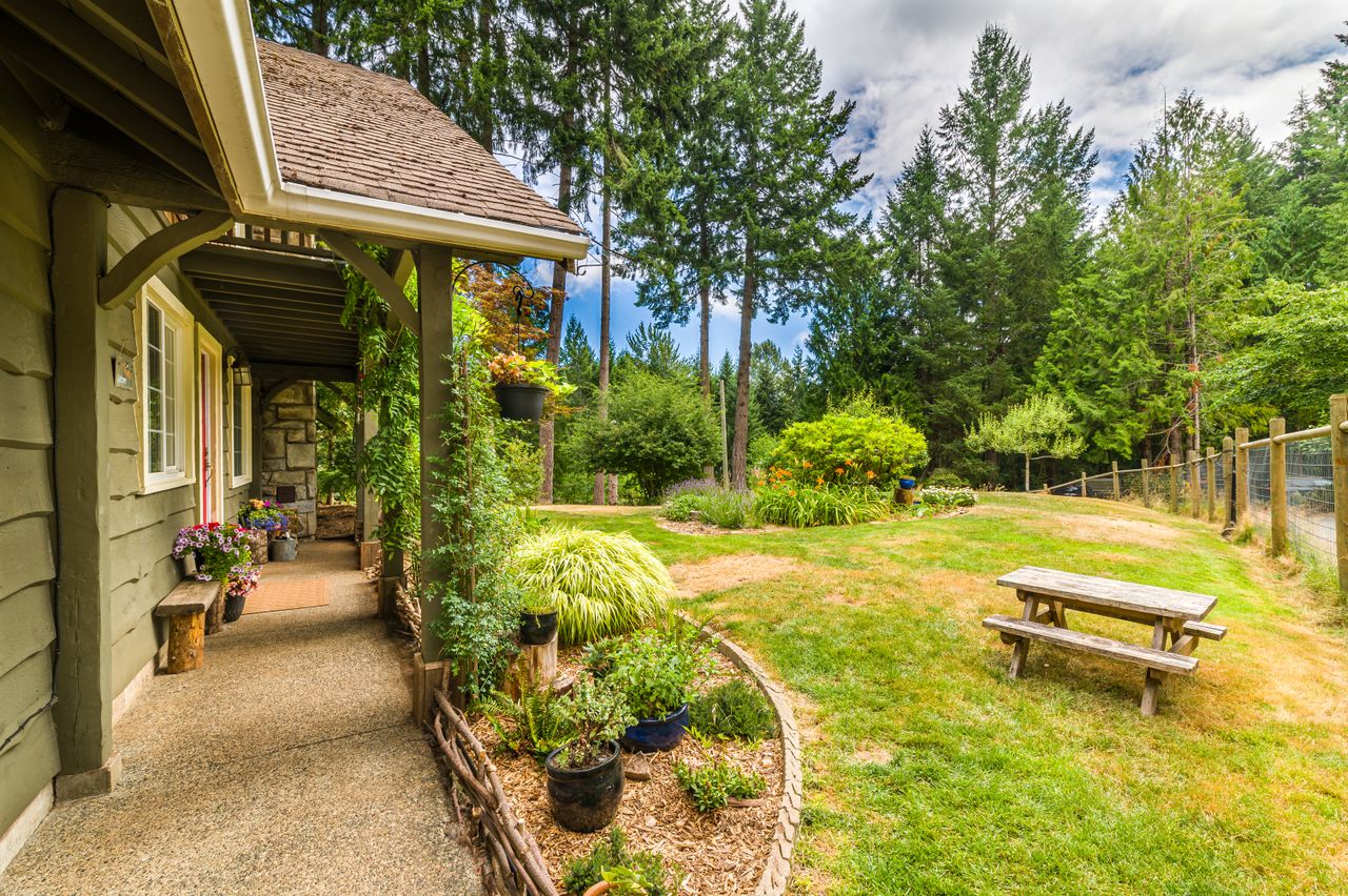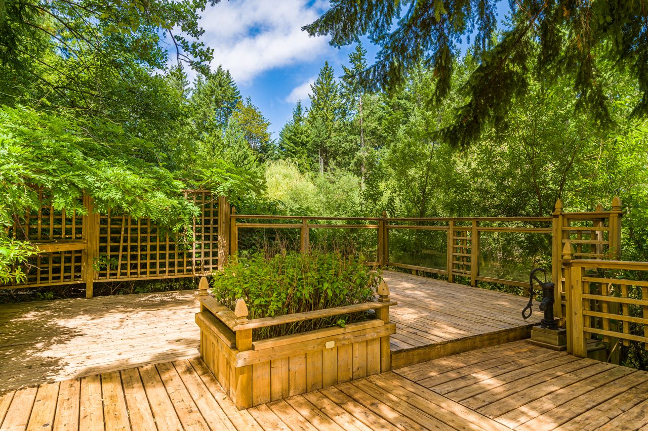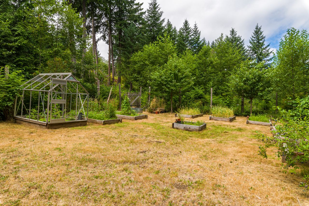 Outside offers an abundance of additional living and entertainment space with a large deck providing the perfect setting for BBQs and for entertaining or for soaking up the sun's rays on warm Westcoast days until the daylight fades when it is time to gather around the firepit with a treed backdrop and surrounding lights adding to the ambiance. Meanwhile, those with a green thumb will appreciate the fenced garden area complete with nine irrigated raised beds.
