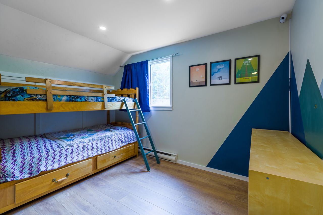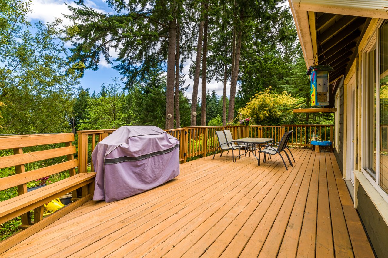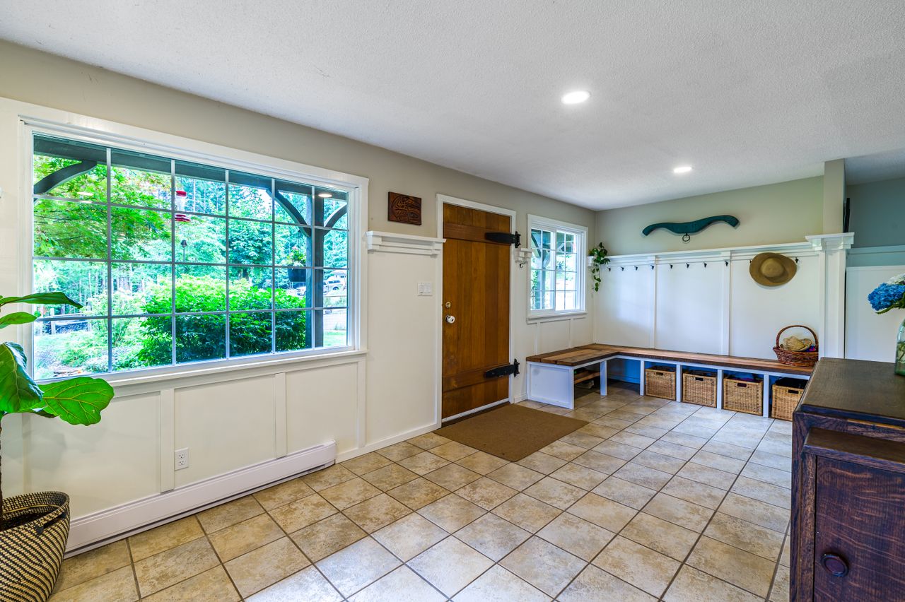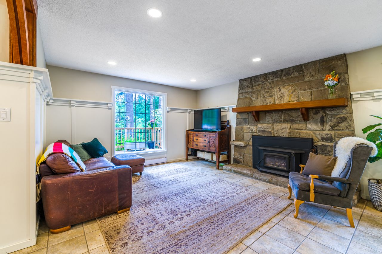Outside offers an abundance of additional living and entertainment space with a large deck providing the perfect setting for BBQs and for entertaining or for soaking up the sun's rays on warm Westcoast days until the daylight fades when it is time to gather around the firepit with a treed backdrop and surrounding lights adding to the ambiance. Meanwhile, those with a green thumb will appreciate the fenced garden area complete with nine irrigated raised beds.
