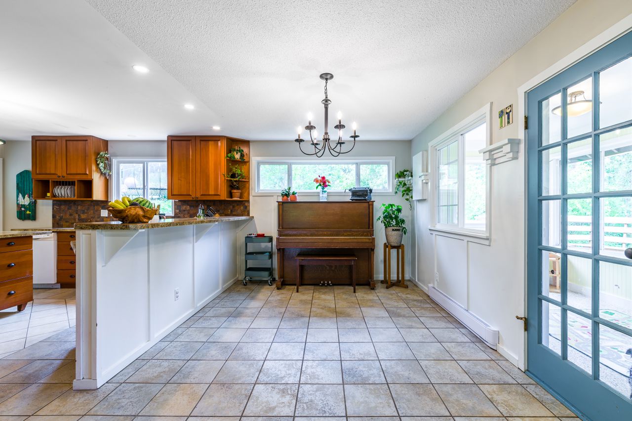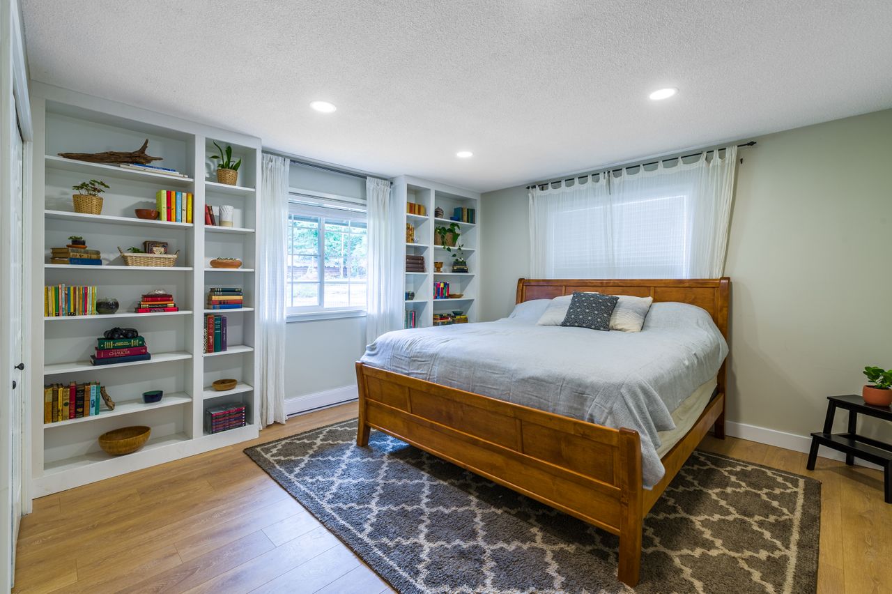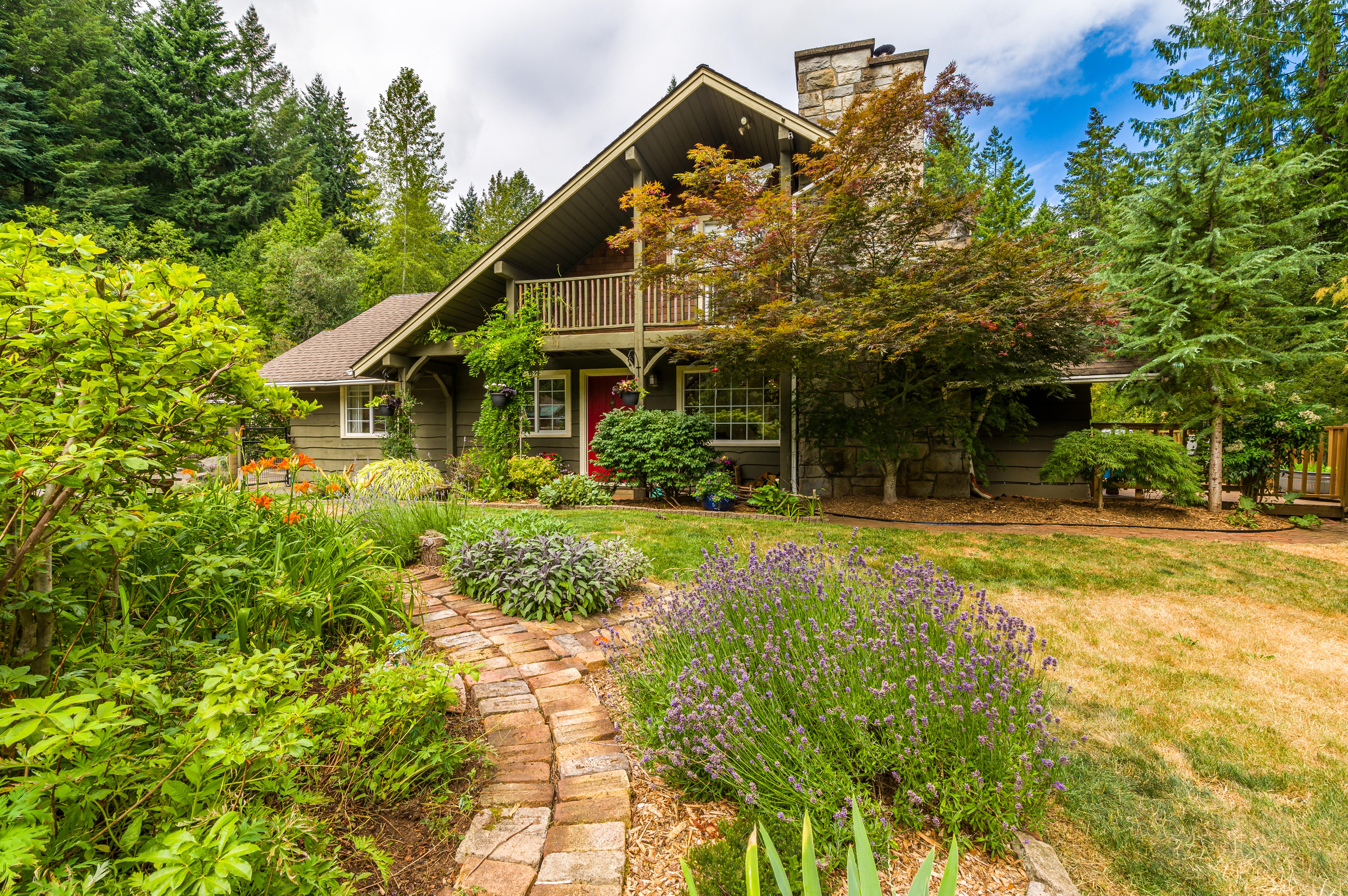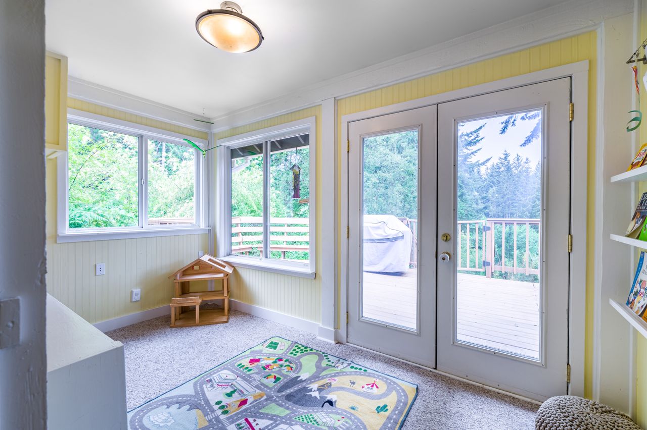 Outside offers an abundance of additional living and entertainment space with a large deck providing the perfect setting for BBQs and for entertaining or for soaking up the sun's rays on warm Westcoast days until the daylight fades when it is time to gather around the firepit with a treed backdrop and surrounding lights adding to the ambiance. Meanwhile, those with a green thumb will appreciate the fenced garden area complete with nine irrigated raised beds.