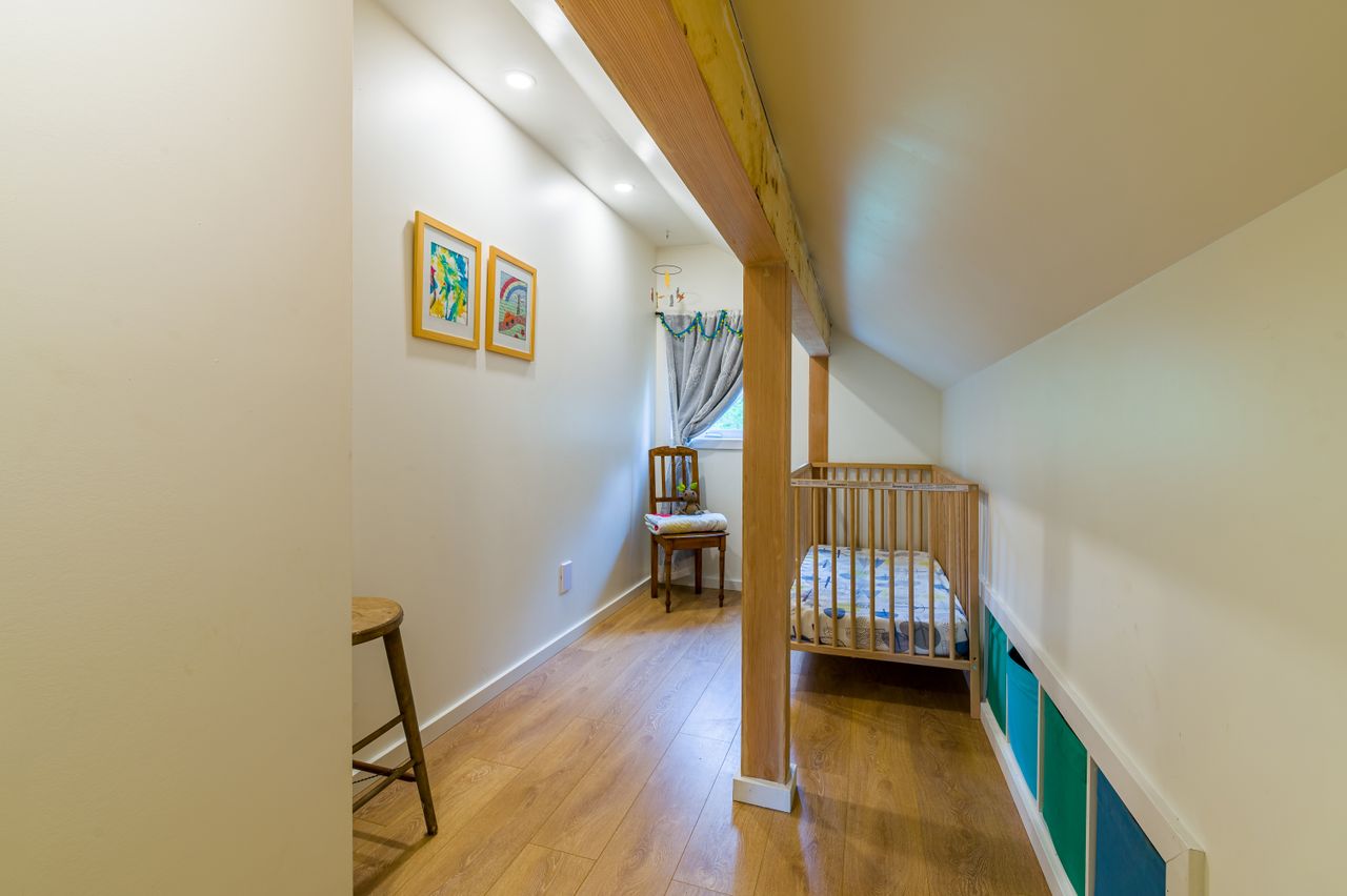 Upstairs you will find two bedrooms, (no closets), one of which features a delightful covered balcony, and a den, while a large attic with storage in the eaves and a 3 piece bathroom completes this floor.