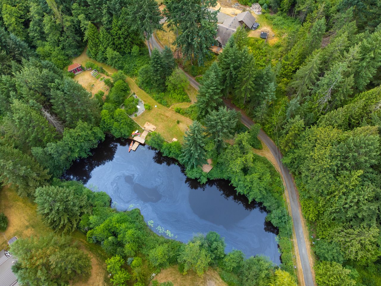 With countless ways to lose oneself on this spectacular property, the pond will surely take centre stage. Three-quarters of an acre in size and 15' at its deepest point the pond is a deep bowl shape, roughly 5-6' deep around its perimeter within a few feet of shore. In addition to being a great place to swim and play, with a nature-themed play area for kids as well as an old boat with a slide, this is also home to a stock of rainbow trout obtained from a local supplier. A large deck overlooks the water complete with a three-tier dock, one of which is floating, sure to become the chosen venue for family and friends to gather and the place where lifetime memories will be made for years to come.