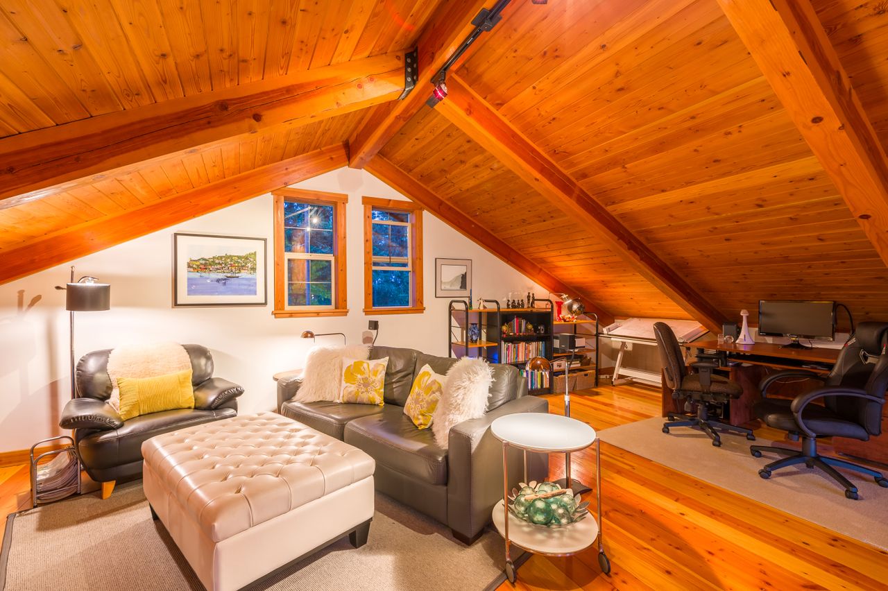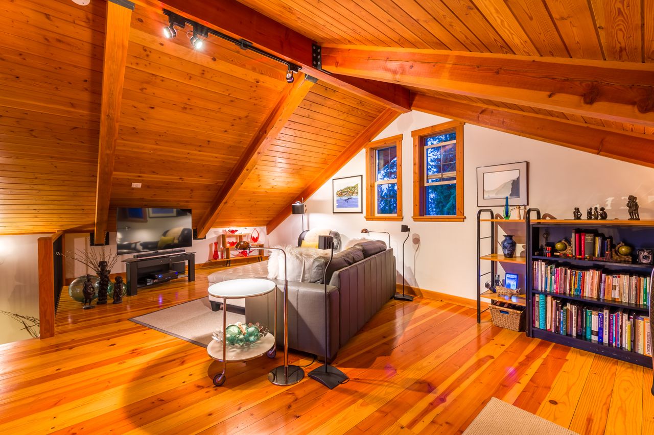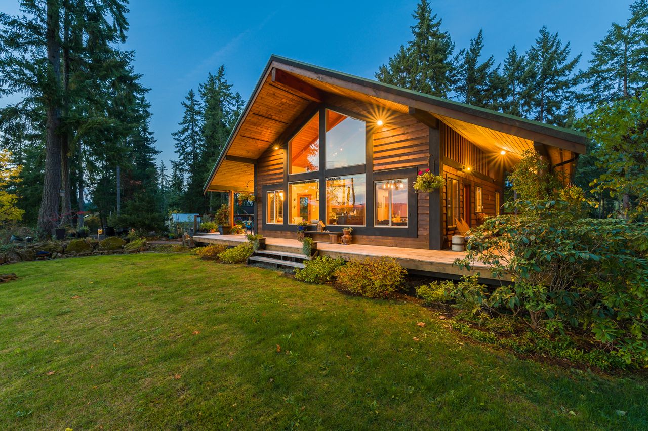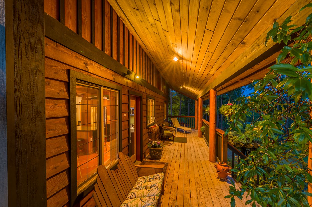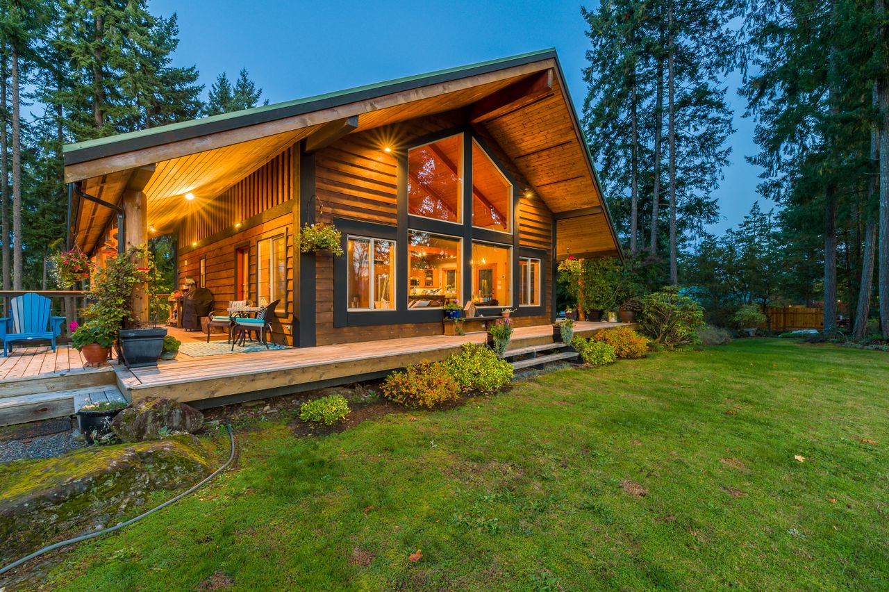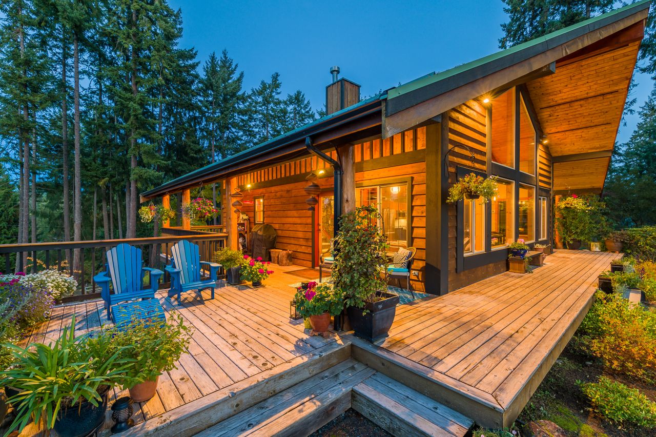 Outside, the living space is extended by the almost 1,000 sqft of wrap-around covered and open cedar decks, allowing you to be at one with nature regardless of the weather and without leaving the comfort of your deck chair, while the rear yard boasts south-westerly exposure and is the perfect setting to enjoy the sunsets. The aesthetics of the property have been enhanced by running the electrical service to the house underground while cedar siding and trim, and beautiful, mature landscaping with a micro watering system completes the quintessential west coast look, with a carport and abundance of parking space ensuring there is plenty of room for all the toys.