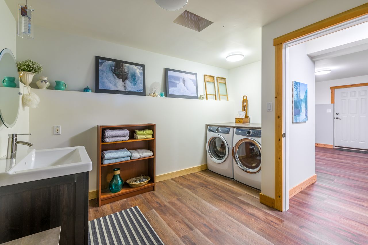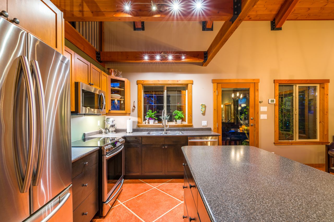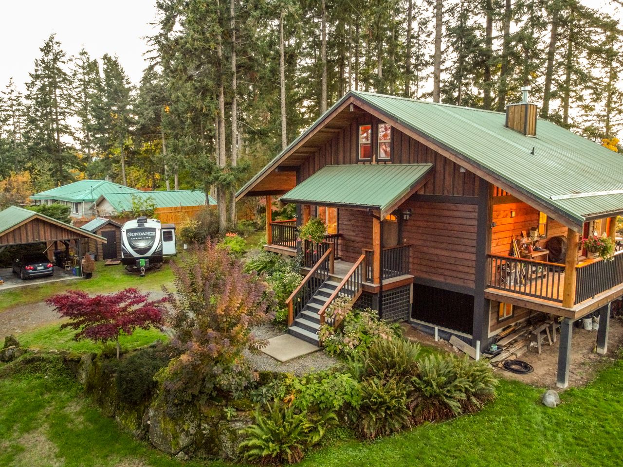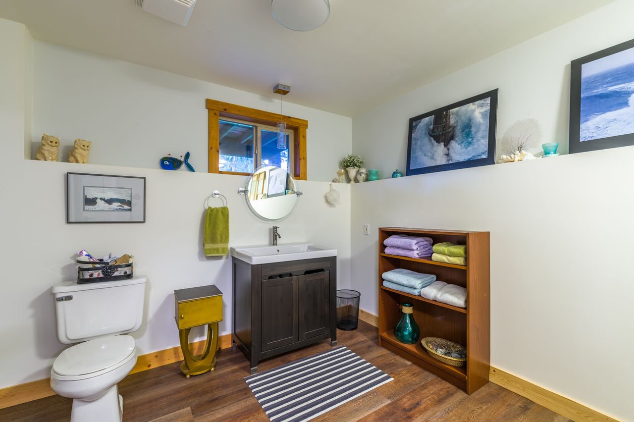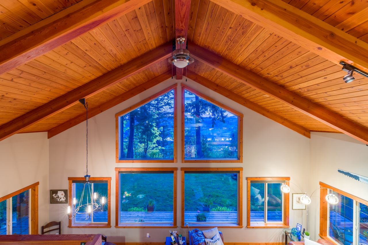 Outside, the living space is extended by the almost 1,000 sqft of wrap-around covered and open cedar decks, allowing you to be at one with nature regardless of the weather and without leaving the comfort of your deck chair, while the rear yard boasts south-westerly exposure and is the perfect setting to enjoy the sunsets. The aesthetics of the property have been enhanced by running the electrical service to the house underground while cedar siding and trim, and beautiful, mature landscaping with a micro watering system completes the quintessential west coast look, with a carport and abundance of parking space ensuring there is plenty of room for all the toys.
