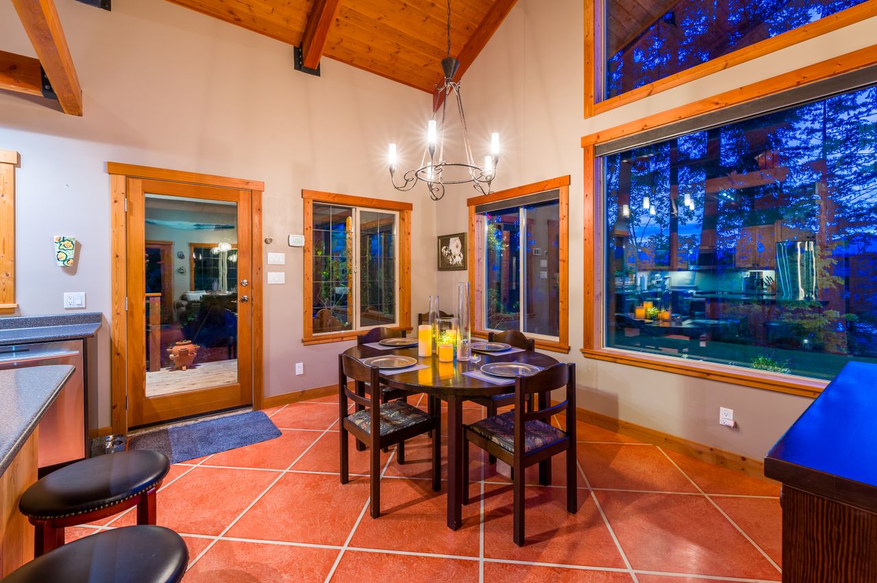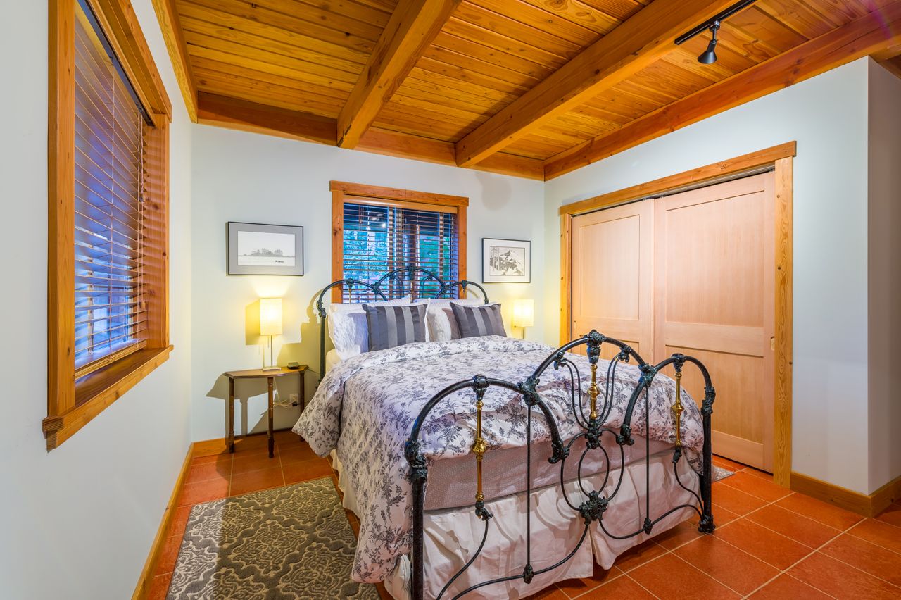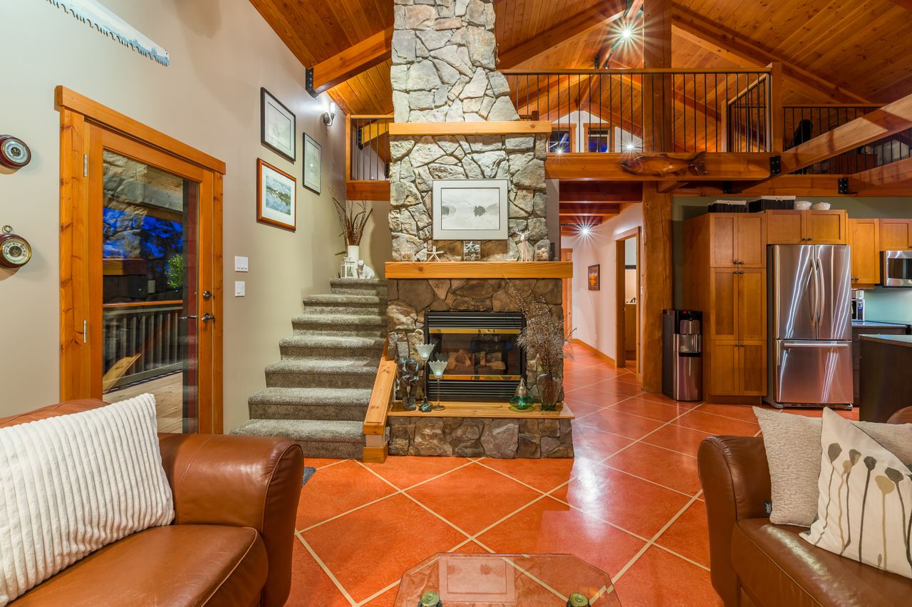 Attention to detail is evident throughout this beautifully designed home which boasts high-end custom finishes and offers 2,146 sqft of comfortable, functional living space with 2 bedrooms plus a den/office and 2 bathrooms. Once inside, you will be drawn through to the open concept living space by the custom concrete flooring, post and beam vaulted Douglas Fir ceilings, and full-height picture windows that provide a stunning 180-degree view of the lake and mountains, while the in-floor heating throughout and the floor-to-ceiling rock-clad fireplace is sure to take the chill off a winter’s evening and sets the scene for any occasion.