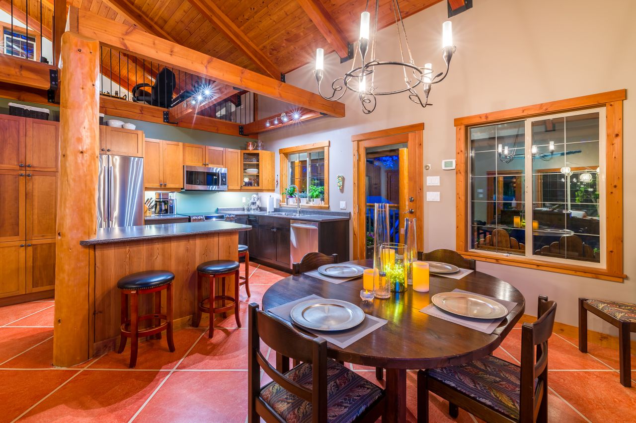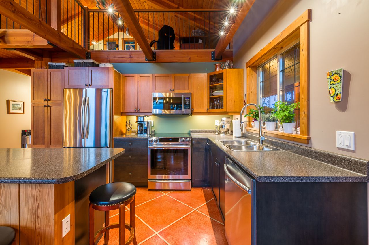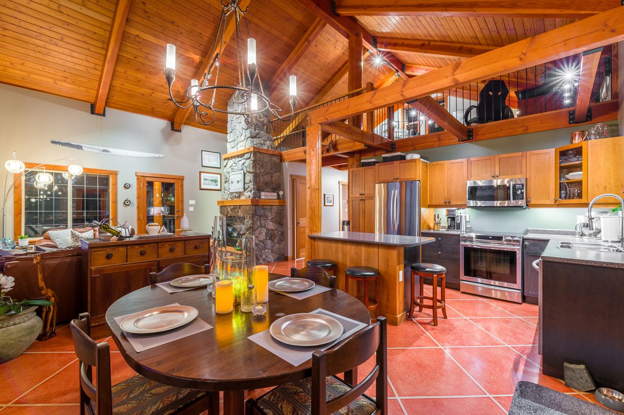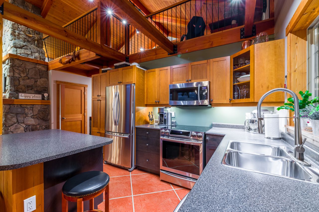 The well-appointed kitchen with plenty of storage space and high-end appliances will meet all the chef’s needs while an island complete with an eating bar and an adjoining dining area will be the perfect place to gather for a casual meal or for more formal dining before retiring to the comfortable sitting area to unwind in front of the fire at the end of a long day. The primary bedroom is conveniently located on the main floor along with a spacious 3-piece bathroom while the upper level features a loft overlooking the living area complete with custom railings and fir floors creating a cozy family room or multi-purpose space.