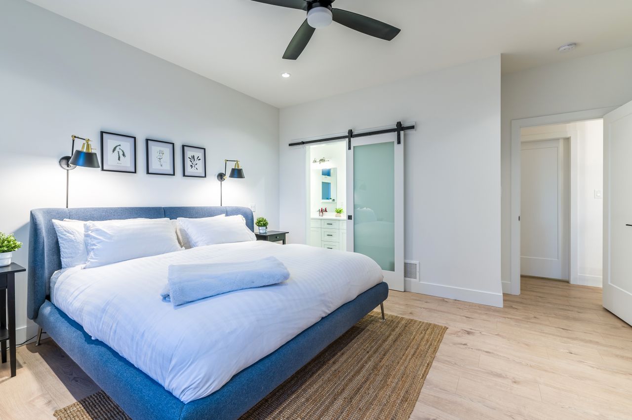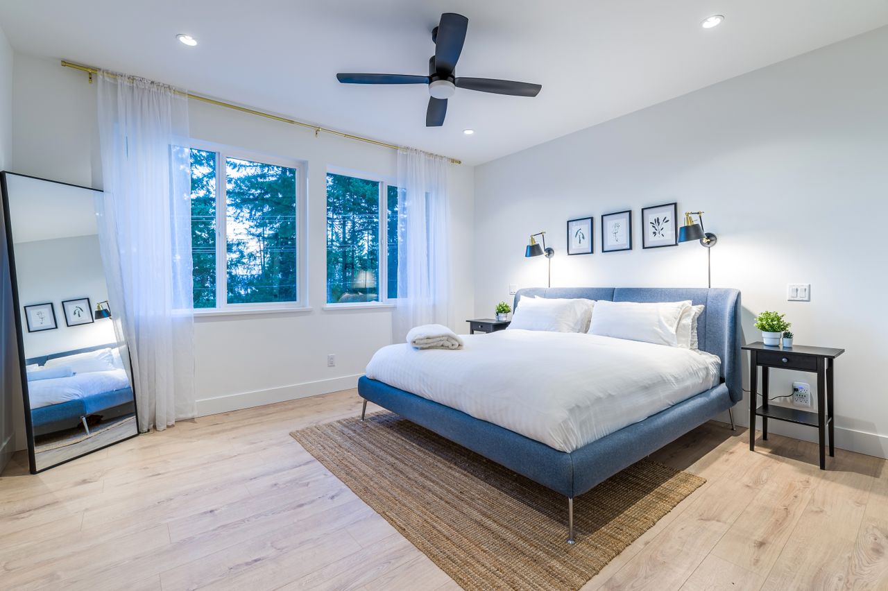 The functional floor plan offers 2,629 sqft of tastefully finished, contemporary living space with five bedrooms, three bathrooms, and views out to the ocean and mountains.