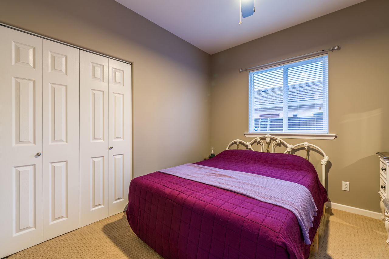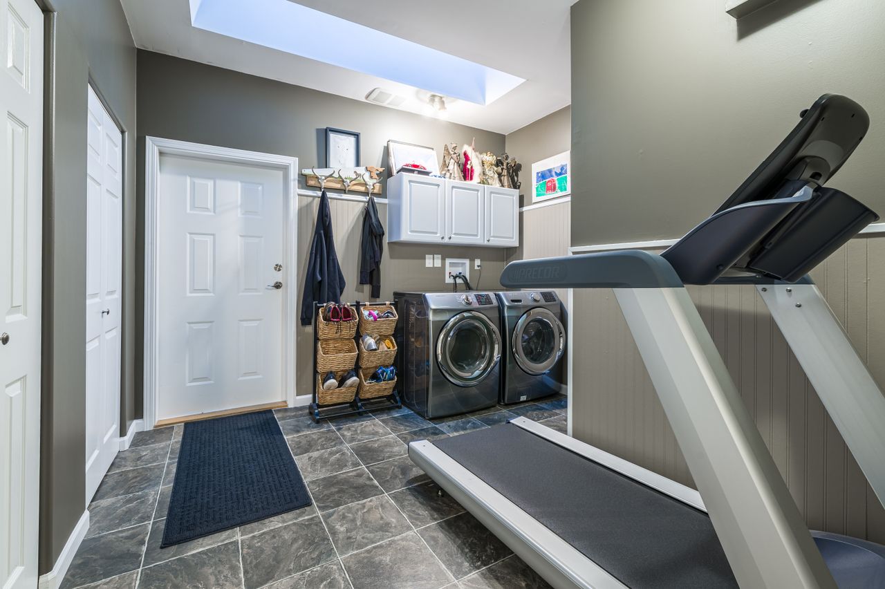 The bedrooms are to the left of the foyer with the primary offering a walk-in closet, a tasteful 4-piece ensuite, and a patio for your morning coffee, while two further bedrooms and the main 4-piece bathroom are nearby. A spacious laundry room is also conveniently located in this wing of the home and offers bonus space for a workout or craft corner, while the adjoining double garage provides 518 sqft ensuring all your storage needs are met.