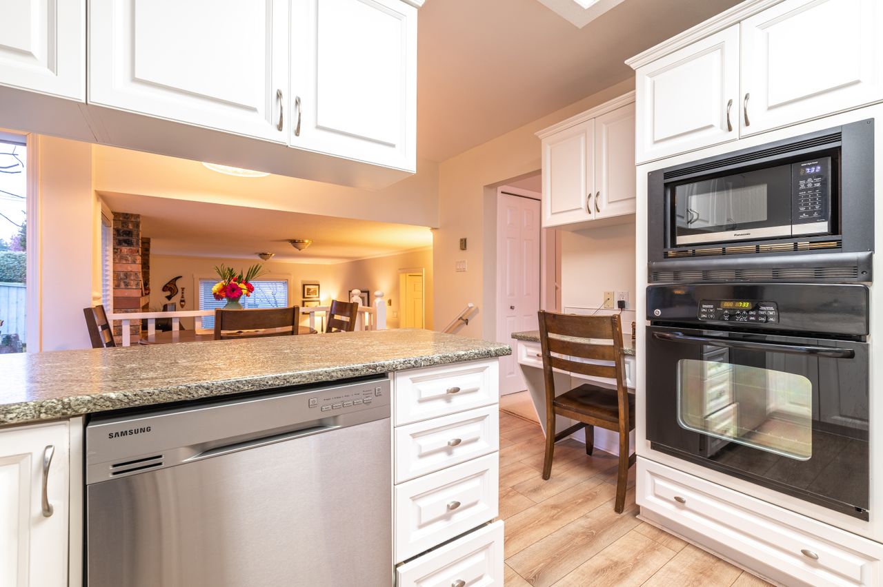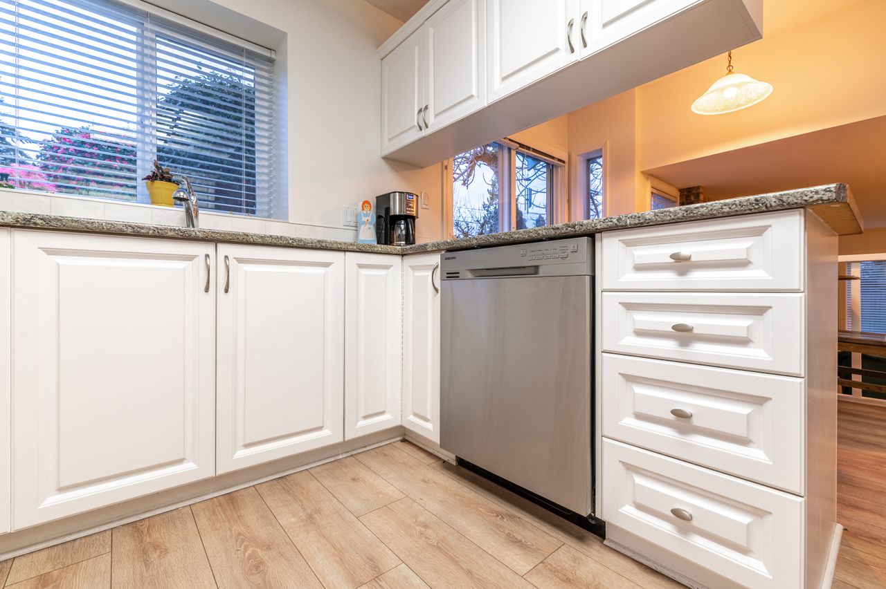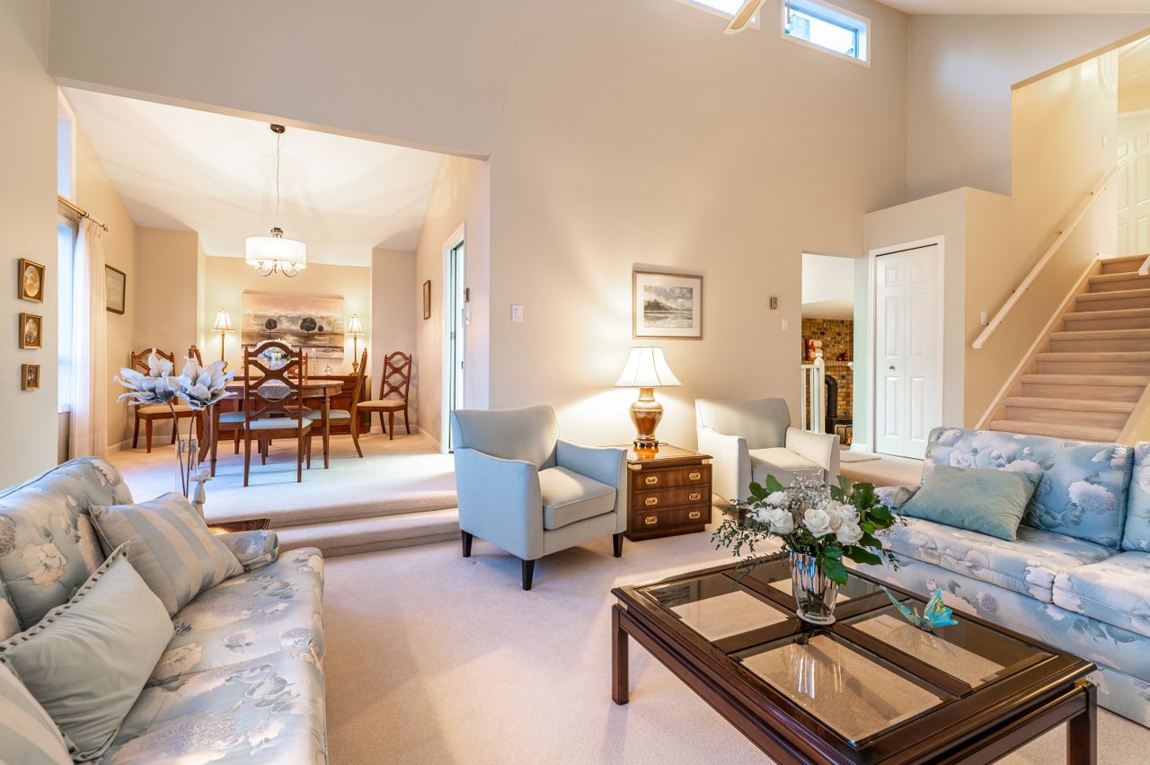 A warm, bright and spacious foyer welcomes you into this immaculate home that holds so many cherished memories with the west coast design offering an openness and flow to the 1,946 sqft of living space that lends itself just as easily to everyday family living as it does to hosting social gatherings. You will appreciate the 16ft ceilings in the formal living room with an abundance of strategically positioned windows that capture the light and the ocean and mountain views while the adjoining dining room will be the perfect venue for family and friends to gather to eat. Meal prep will be a pleasure in the well-appointed kitchen which offers the chef in the family plenty of room for all manner of culinary delights while access to the charming patio from the breakfast area will ensure you have a relaxing spot to enjoy your morning coffee. Just off the kitchen, the sunken family room offers a cozy and welcoming space to retreat to at the end of a long day or for games night on the weekend while down the hall, you will find a bedroom with its own entrance, (just needs a closet), as well as laundry facilities and a 2-piece bathroom.