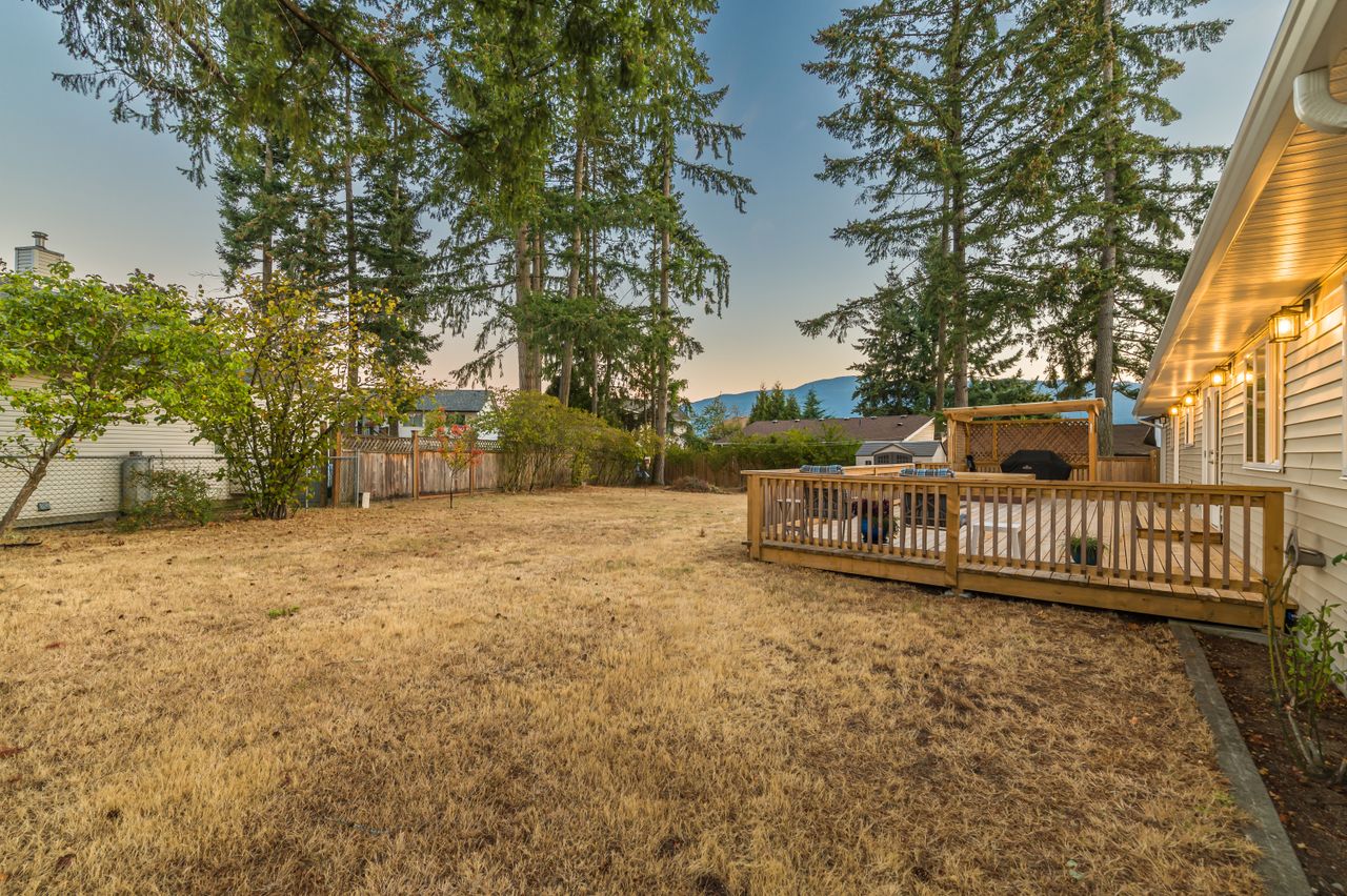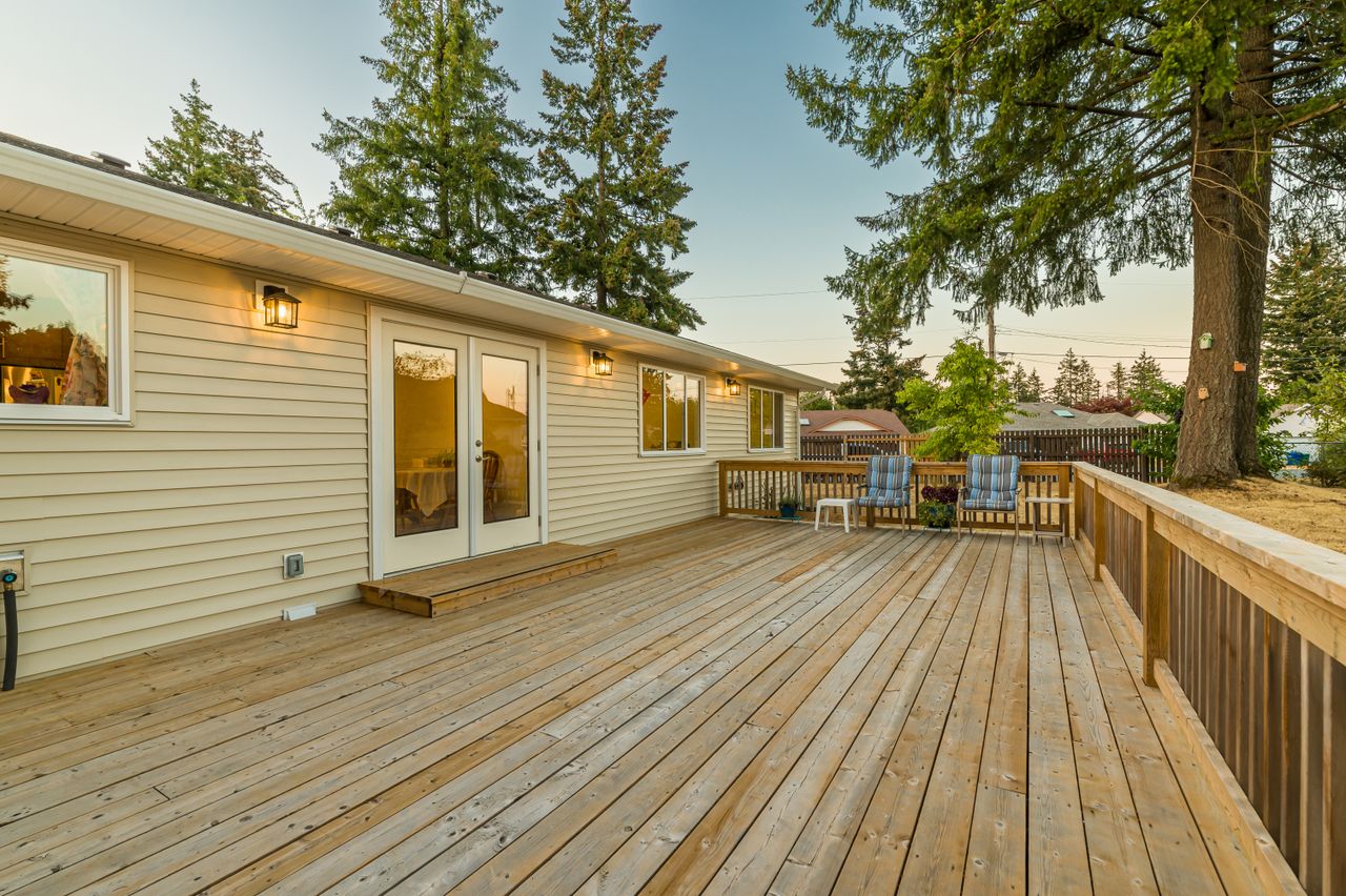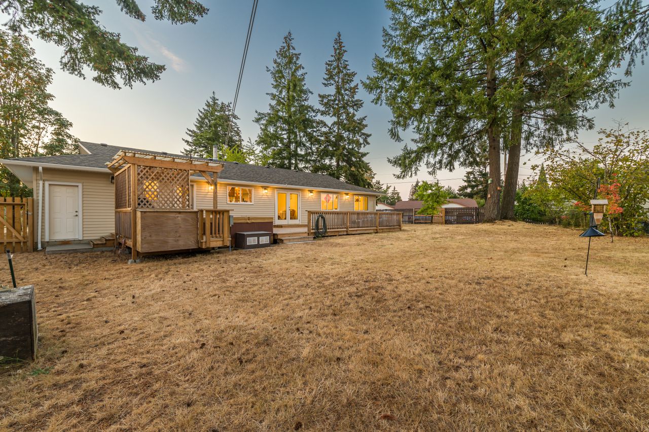 The 0.30-acre corner lot offers mature fruit trees with an abundance of space for children and pets to play, a large deck in the rear yard ideal for entertaining with a hot tub providing the perfect place to unwind at the end of a long day, and a garage and additional parking ensuring there is room for all the toys.