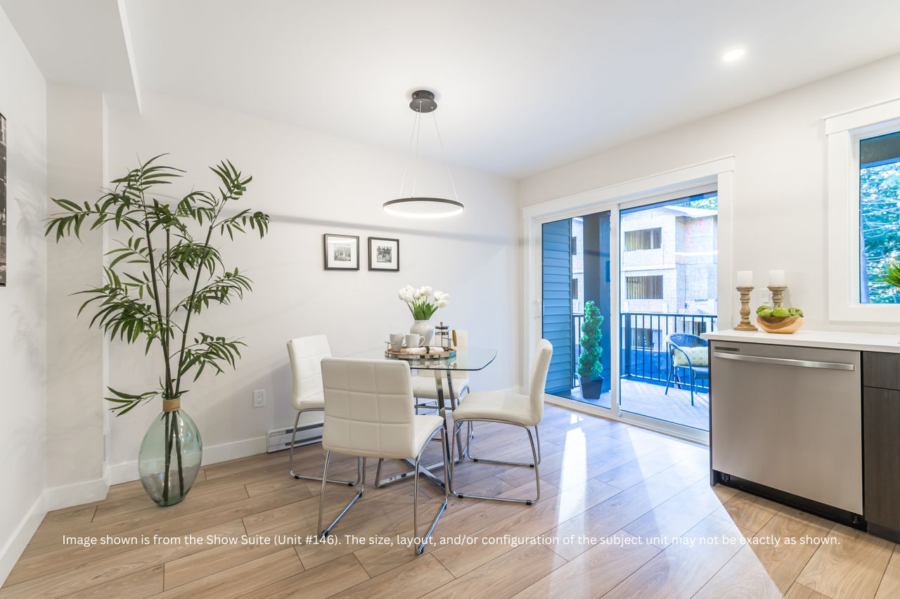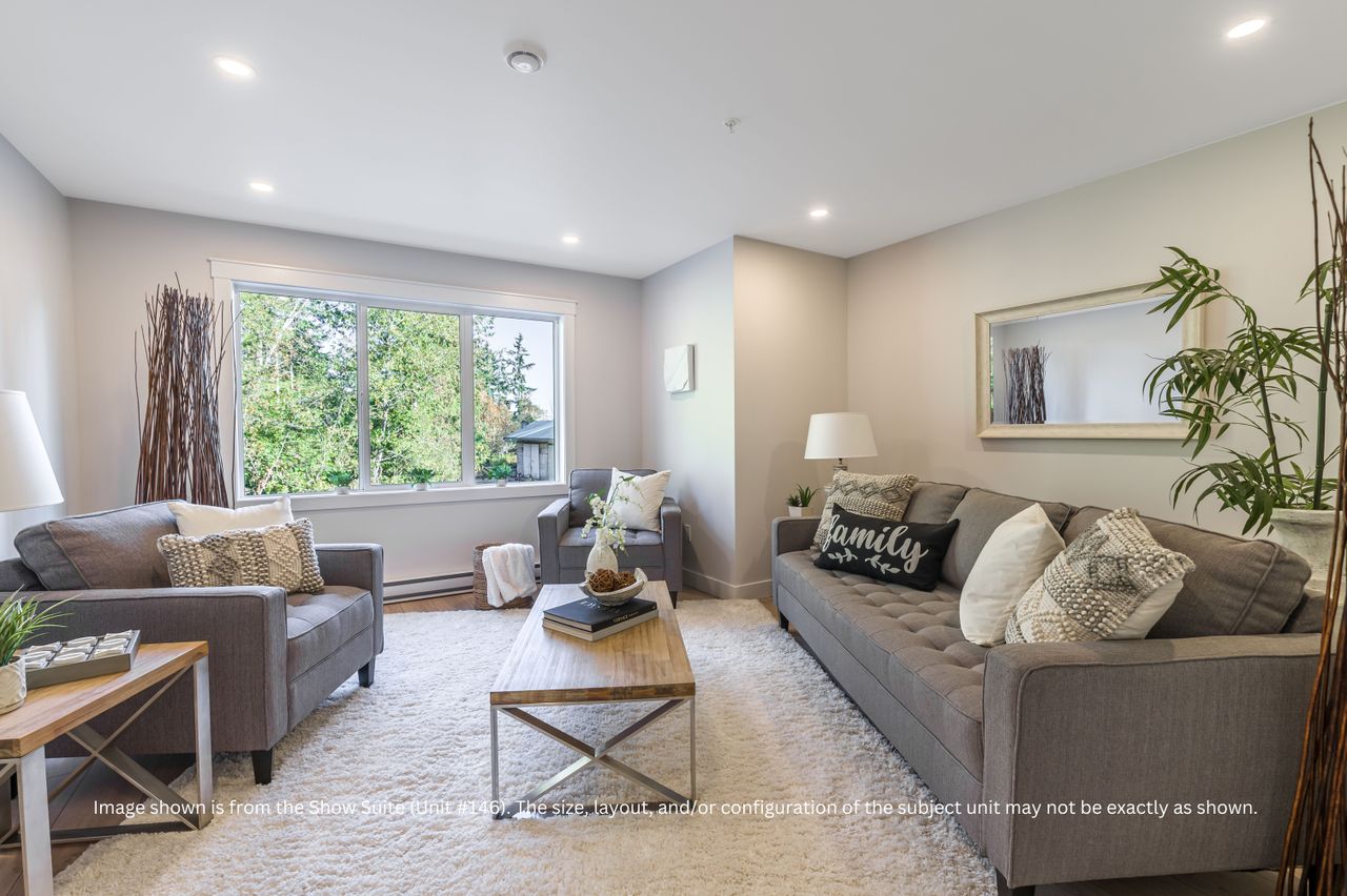 Townhomes at The Southbend boast one of two on-trend finishing packages with unit 131 featuring the Premium Package. Design elements such as matte black hardware, lighting, and kitchen and bathroom fittings and fixtures are found throughout, while the bathrooms feature calacatta marble laminate counters and carrerra tile flooring. Wide plank laminate flooring and classic grey carpet flow throughout the rest of the home creating both a contemporary and a comfortable space.