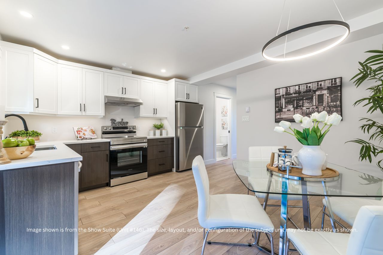 The Premium Finishing Package in the L-shaped kitchen, a feature of the garden-access units that front the Ninth Street extension, boasts contemporary verismo flat panel lower cabinets and matte white shaker-style uppers with polished quartz countertops and a stainless steel appliance package making meal preparation a pleasure and not a chore, while the adjoining dining area provides direct access to the deck for your morning coffee or for entertaining family and friends. The living room, just steps from the kitchen/dining area, provides a welcome spot to gather with a convenient powder room completing the main floor.