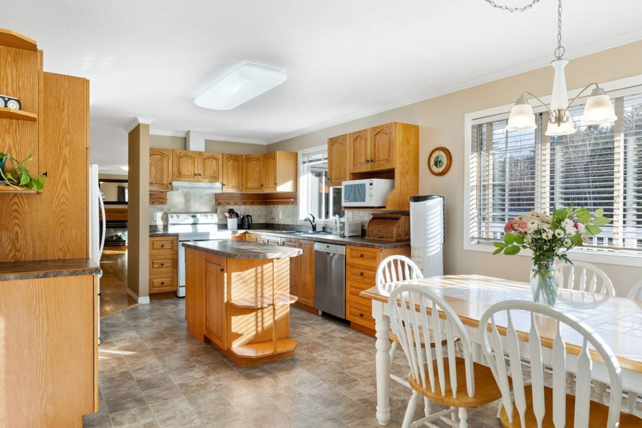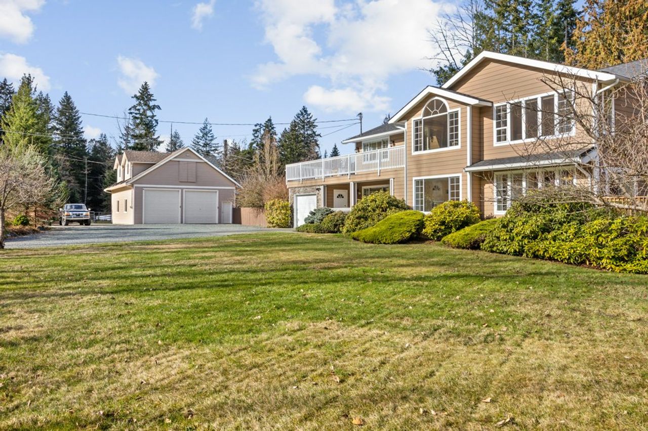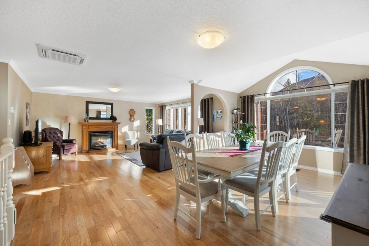 Mature landscaping frames the lot which boasts southern exposure and mountain views while a riding ring and a paddock, a large detached shop complete with over-height ceilings, an attic, a 2-piece bathroom, two horse stalls, and a heated tack room, as well as lots of parking, offer endless possibilities for horse lovers or for those looking to accommodate a home-based business (Buyers to do their due diligence) as well as storage for the toys.