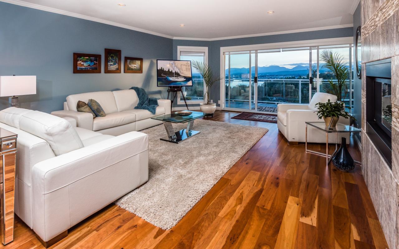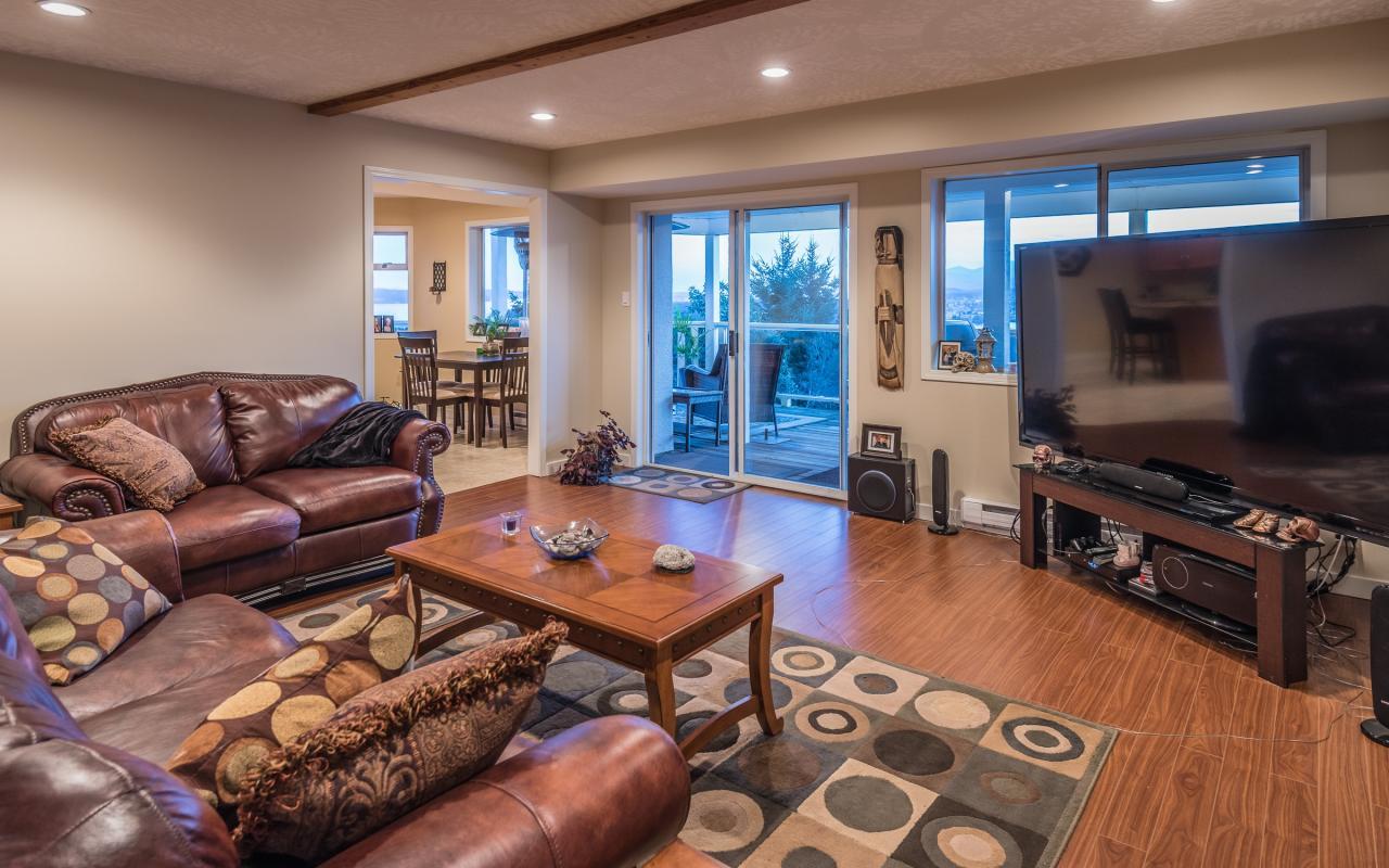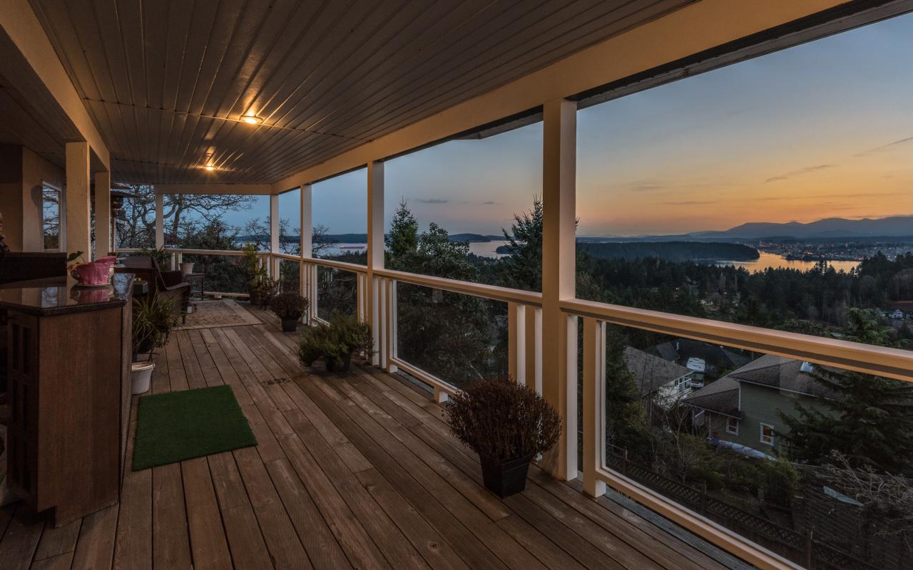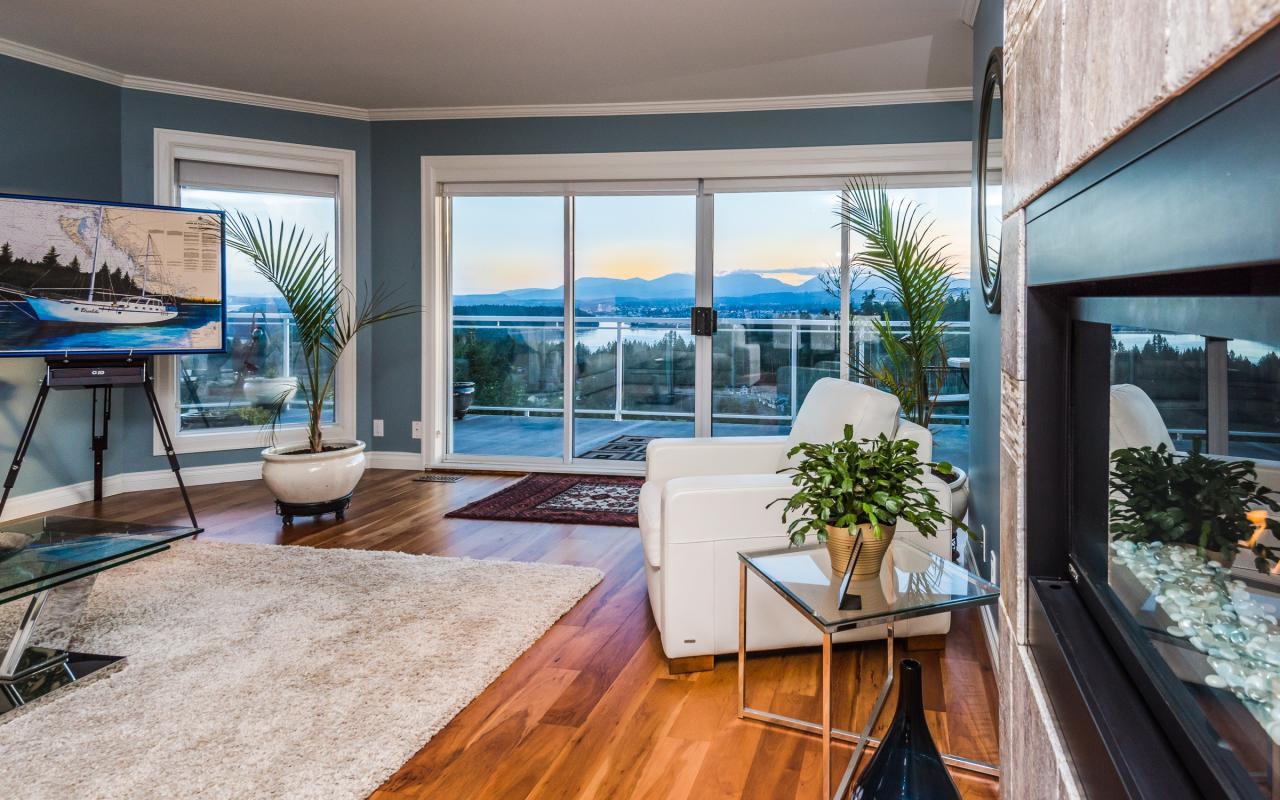 Situated near the top of the highly sought after Glen Oaks Estates, this contemporary 4 bedroom, 3 bathroom, 3,777 sqft. executive home is perched from a rare vantage point that delivers breathtaking vistas in all directions. Stepping foot on the property, as you pass through the elegant front entrance your eyes will immediately be drawn to the spectacular, unobstructed panoramic views which encompass Departure Bay, Downtown Nanaimo and its’ scenic harbour, the offshore islands, and expanding across the Strait of Georgia to capture the bright lights of Vancouver and snow-capped coastal mountains. This modernized custom built, level-entry home offers a dramatic floor plan with each principle room situated to optimize the magnificent views.