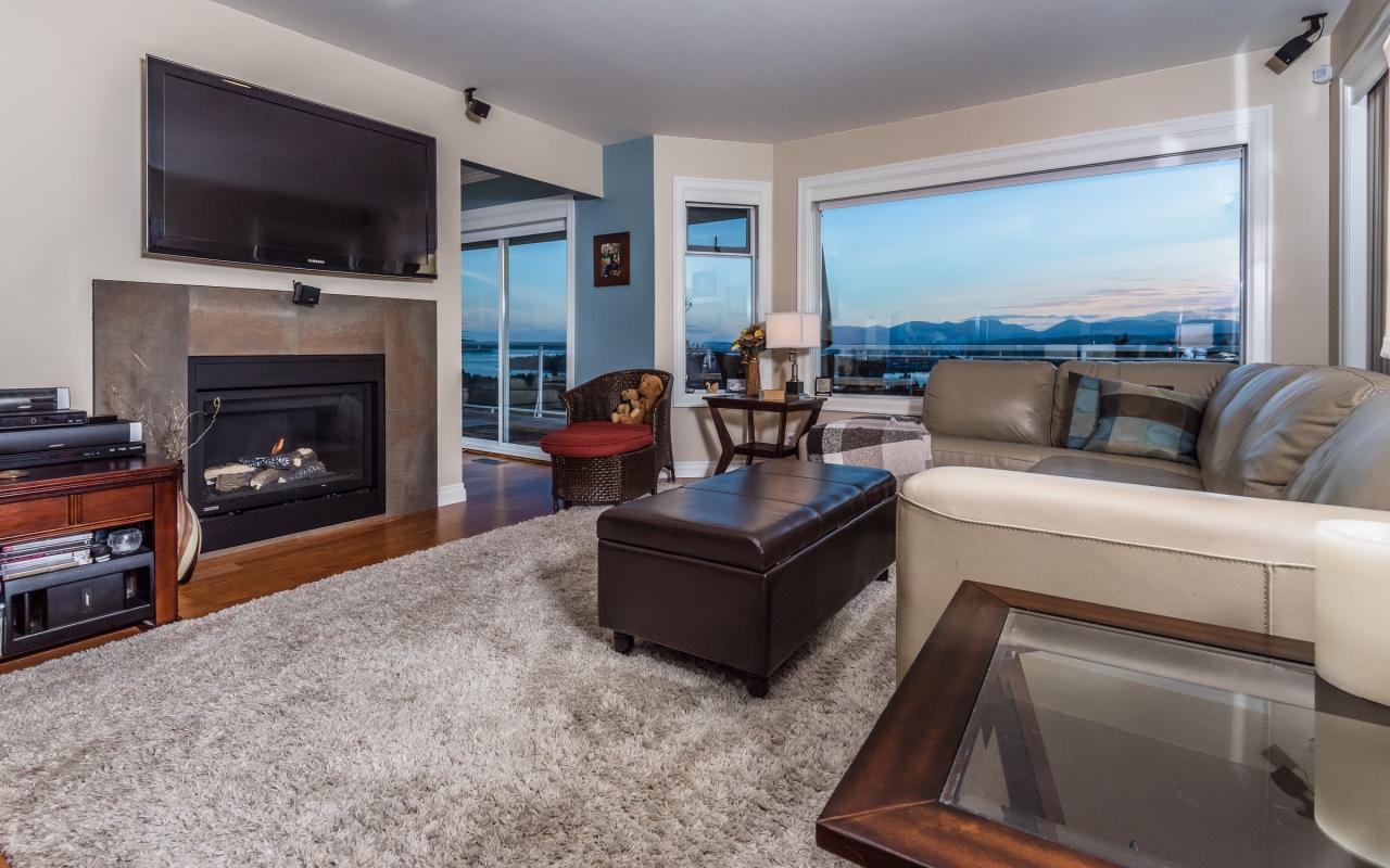 The recent updates define luxury. Even the most discerning buyer will appreciate the quality of craftsmanship that has gone into modernizing this home to a standard rarely found on Vancouver Island. The gourmet kitchen is a chef’s dream with stainless steel Bosch appliances, gas stove, custom built cherry cabinets, quartz countertops, custom-tiled backsplash and an impressive 12-foot kitchen island. Throughout the main level, the engineered cherry floors, strategic placement of the gas fireplaces and the built-in Bose surround sound system create an effective ambiance whereby comfort meets sophistication. However, possible the crown jewel of this luxurious residence in the spa-like ensuite, featuring a large stand alone tub, heated 32” x 16” porcelain tiles right into the large walk-in shower with waterfall glass feature, and the custom vanity complete with quartz countertops and undermount sinks. Other notable recent improvements include a new furnace, heat pump, and hot water on demand, which serve to keep utility bills surprisingly affordable.
