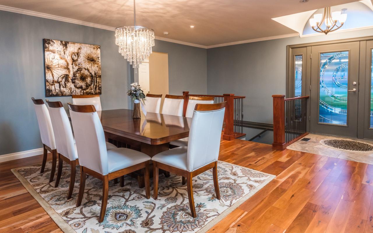 The main level features an inviting open concept design, perfect for entertaining. The dining room flows tastefully into the formal living and adjoining family room, which both offer access to the expansive wrap-around deck. Whether it be hosting a family barbeque or enjoying an evening glass of wine as you take in the buzz of activity in the harbour, this outdoor space sets the perfect stage for memories to be made.