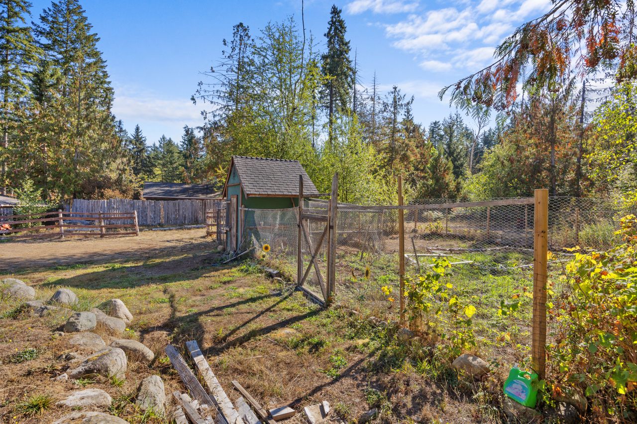 Outside, the property offers the ability to live a more independent and self-sufficient life with features such as a detached shop, chicken coop, fenced-in vegetable and fruit gardens for year-round fresh, home-grown produce, and a picturesque pond in the front of the property which has been used to irrigate the lot.