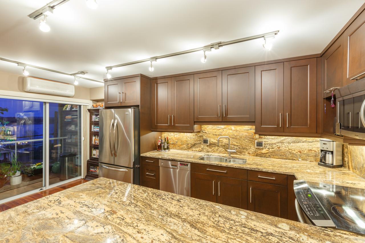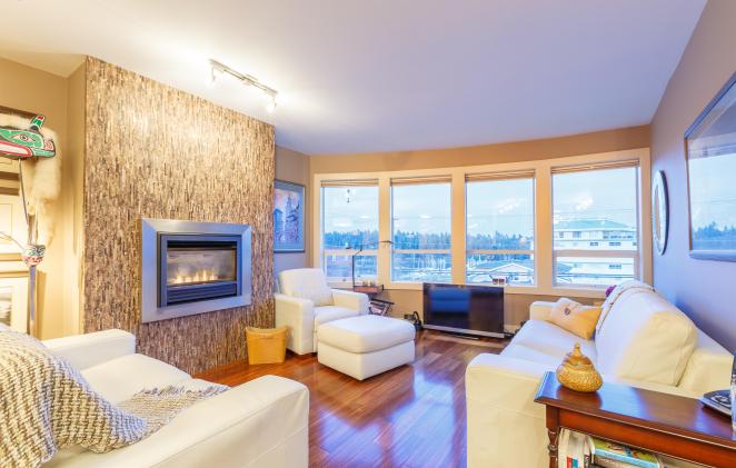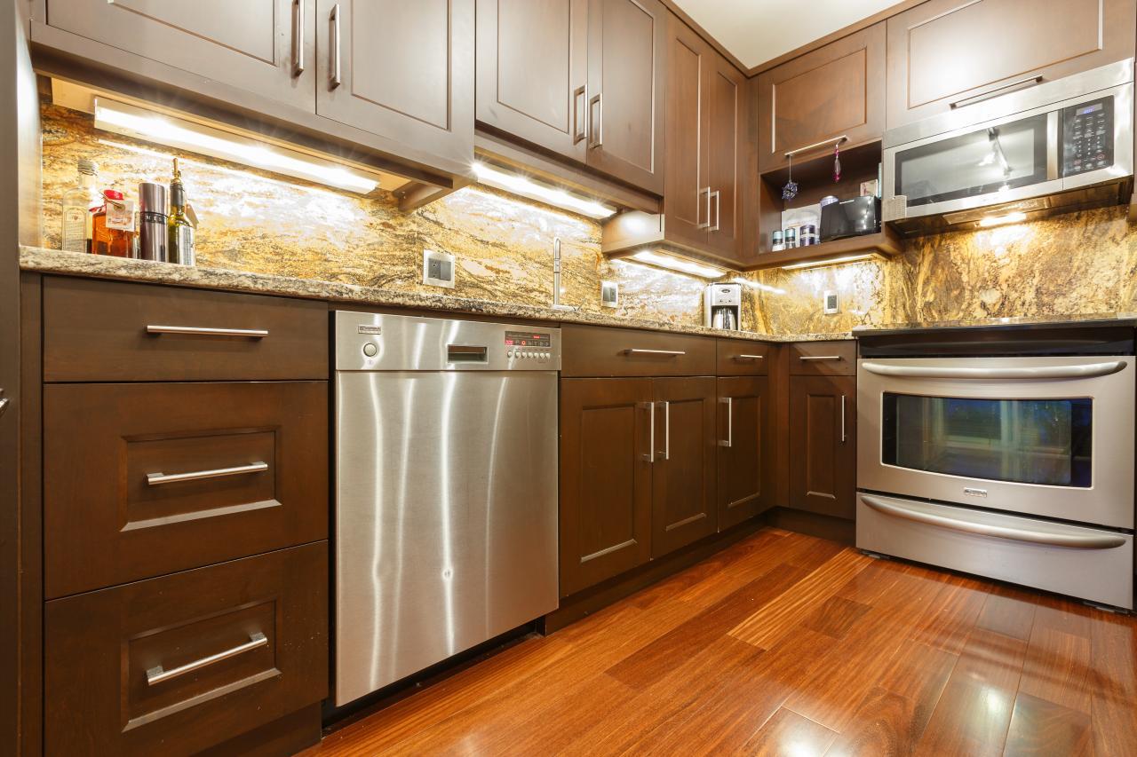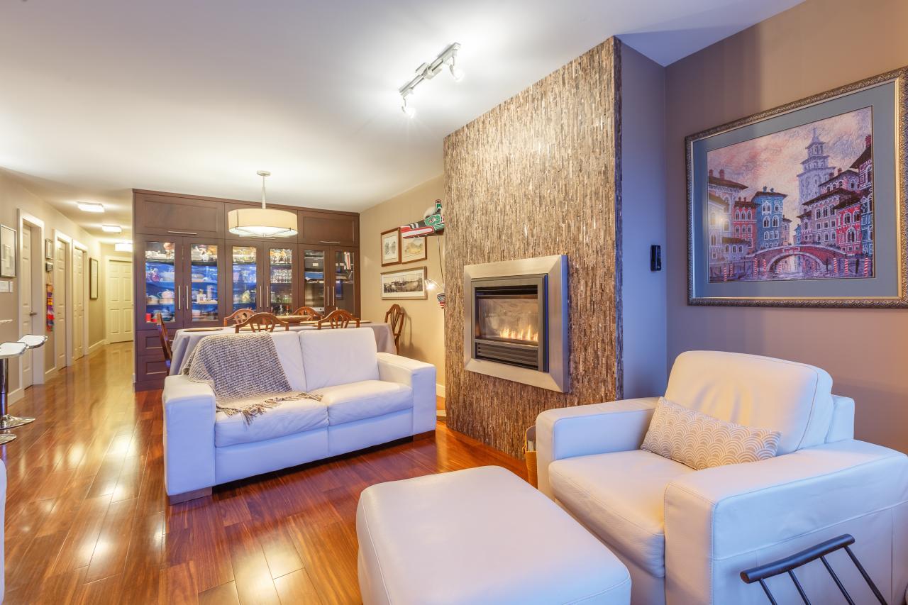 Upon entering this stunning condo, you will immediately be drawn in by the imported Indonesian hardwood flooring, leading you down the hallway to where you will catch your first glimpse of the impressive views of Newcastle Channel and the buzzing Nanaimo Harbour. The main living area, perfectly situated to optimize the magnificent views, features an inviting, open concept design, perfect for entertaining. Updates such as the customized fireplace surround in the living room, and floor-to-ceiling custom cabinetry in the dining room only serve to enhance the ambiance of the unit. The gourmet kitchen is a chef’s dream. With stainless steel appliances, custom cabinets, granite countertops and backsplash, and perfectly situated to be a part of the conversation in the living and dining rooms, preparing meals will surely be a treat! Just off the kitchen, you will find your own private balcony overlooking the harbour. Picture yourself enjoying your morning coffee watching eagles soaring overhead or a pod of orcas passing through Newcastle Channel…