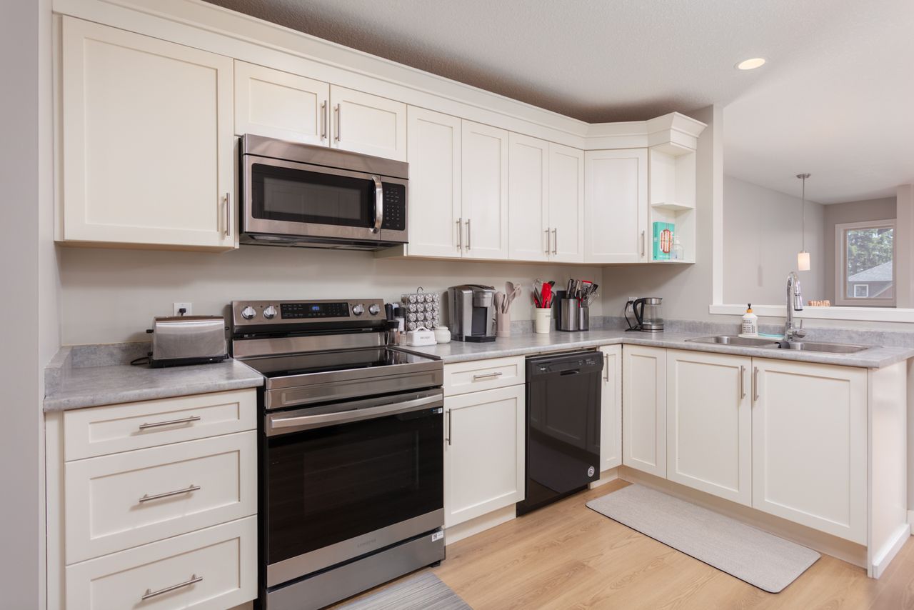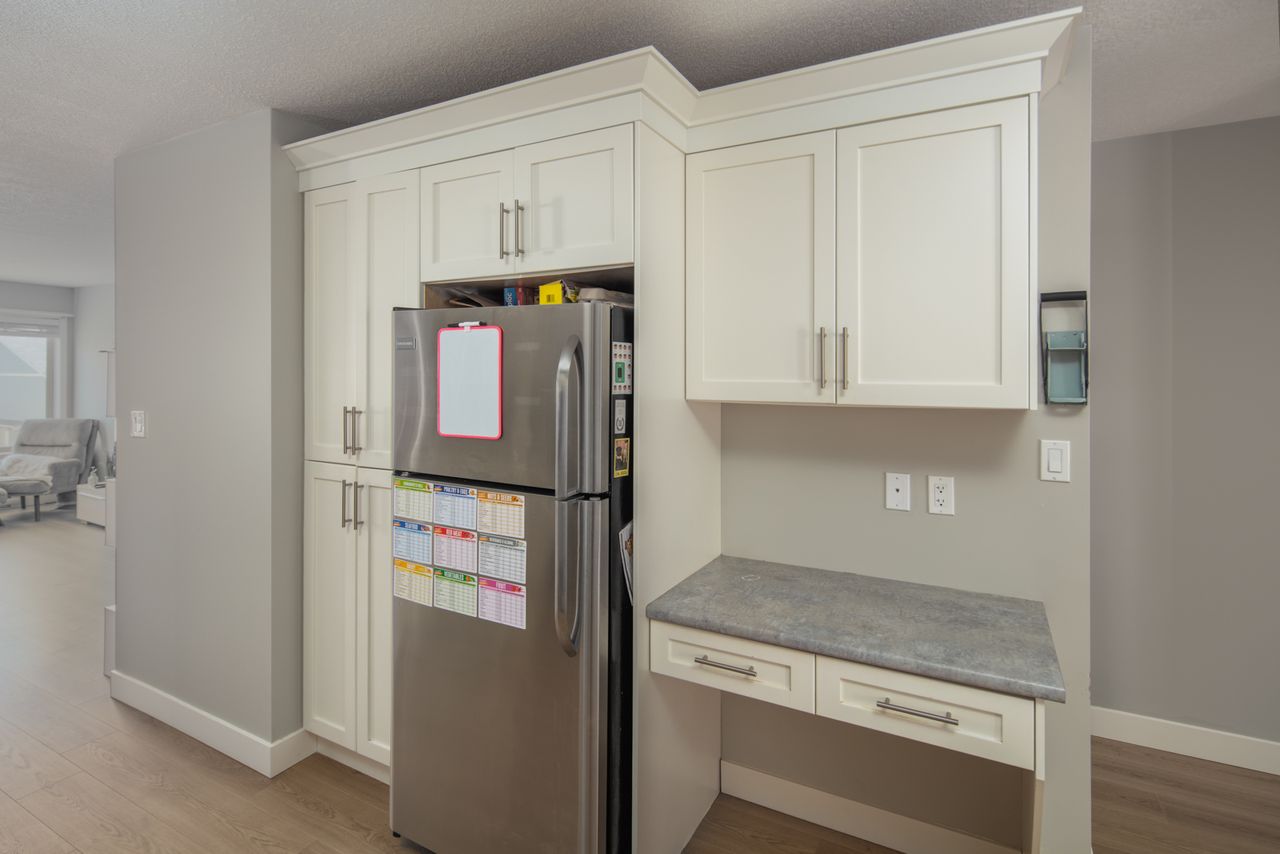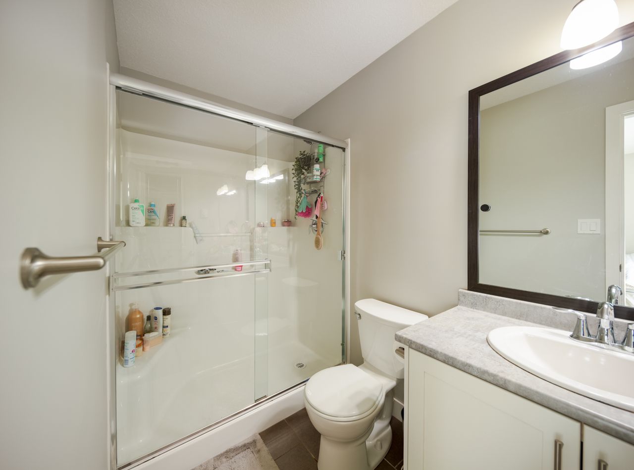 Designed for modern living, the open-concept layout upstairs enhances the feeling of spaciousness and connection, seamlessly integrating the living and dining areas with a bright, well-appointed kitchen with a gas fireplace providing a striking focal point, and adding warmth and ambiance for cozy evenings at home. The primary bedroom, with an ensuite and a walk-in closet, offers a retreat after a long day and is just down the hall from two further bedrooms in this family-friendly layout.