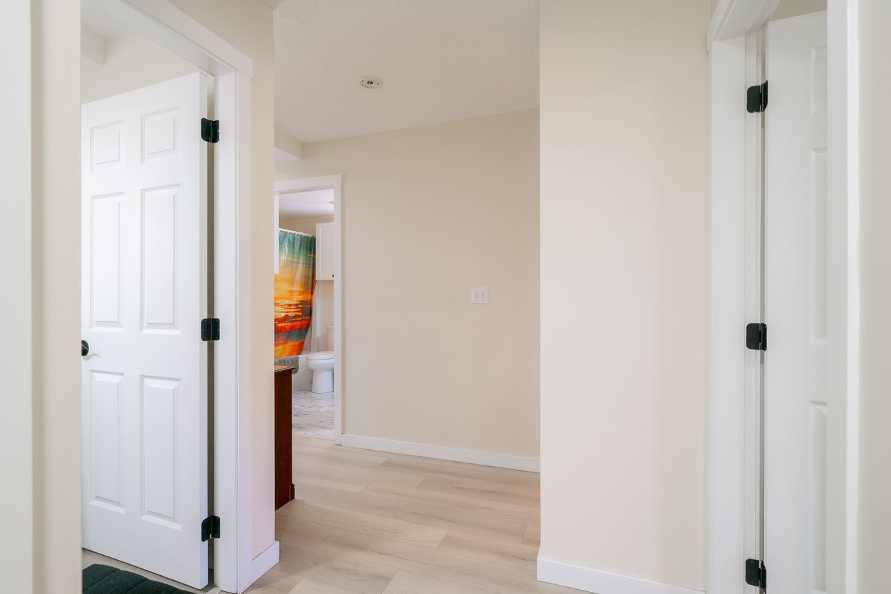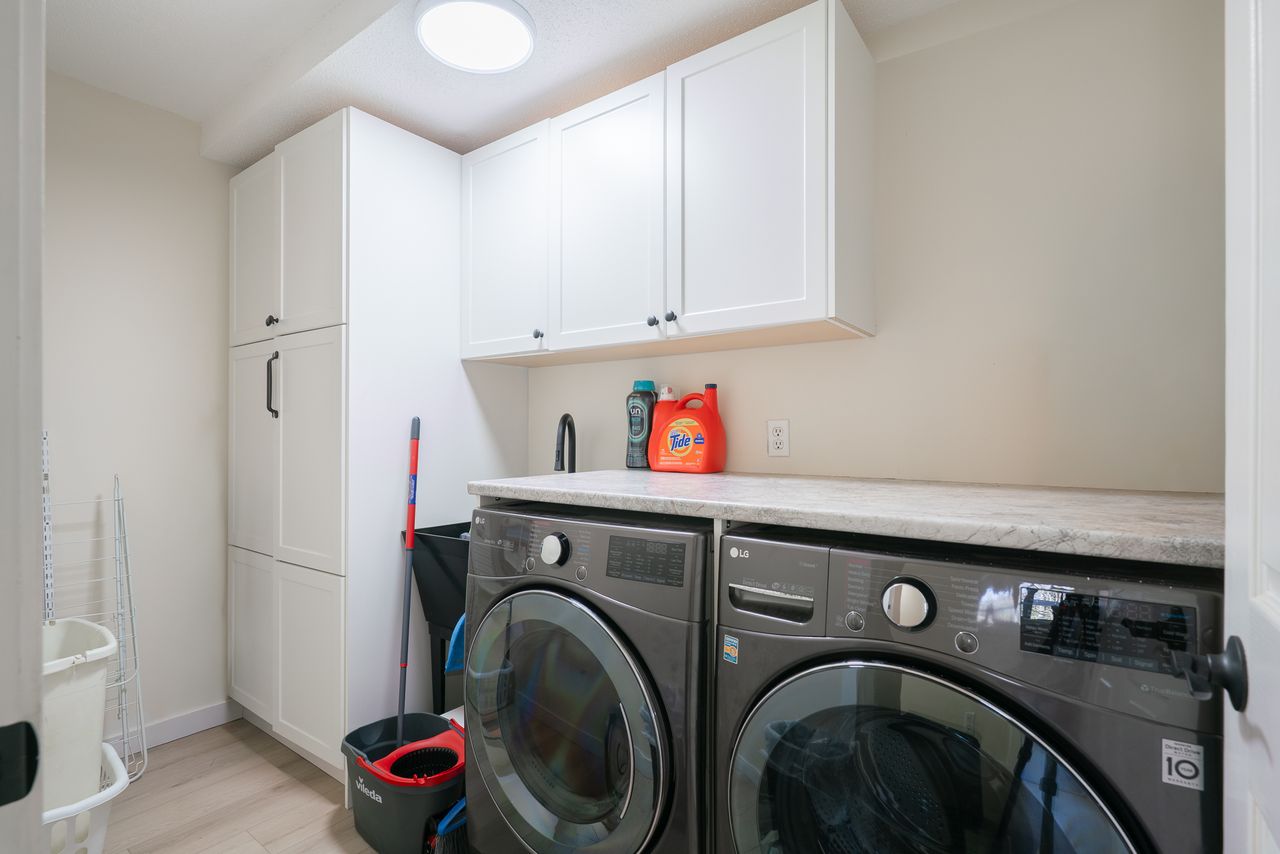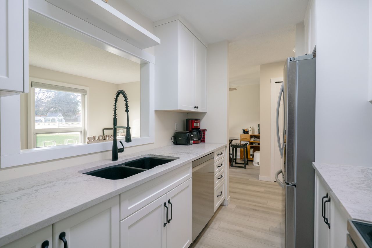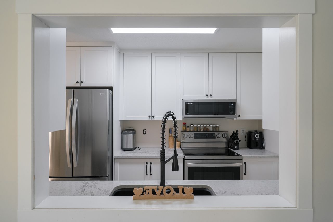 Inside, the home’s thoughtful layout includes two comfortable bedrooms, with the primary offering a walk‑in closet and direct ensuite‑style access to the 4‑piece bath. The modern galley kitchen provides ample counter and cabinet space, and the dining area opens to a private patio—an easy extension of your living space and a lovely spot for morning coffee. Just beyond, a community garden and dog‑friendly Gyro Park, complete with a play area, offer inviting green spaces mere steps from your door.