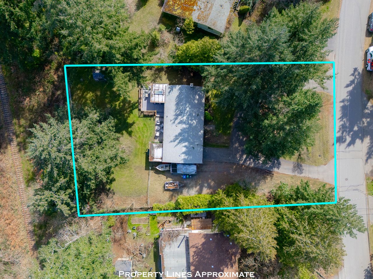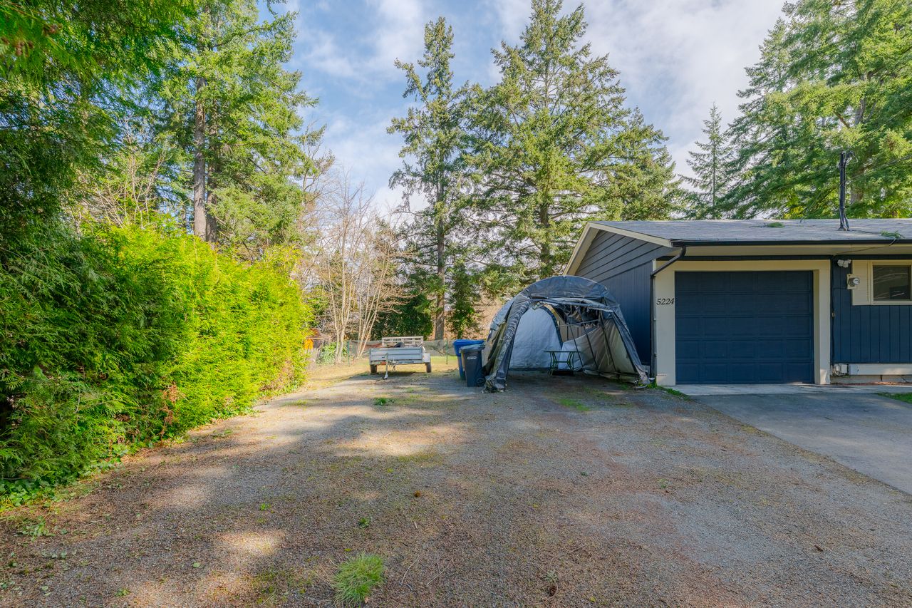 Outdoors, a patio and large deck overlook the expansive, fenced backyard—an inviting space for gardening, play, or quiet relaxation. A curved driveway provides easy access and ample parking for the boat or RV, complemented by an attached single garage with workshop/storage space at the back.