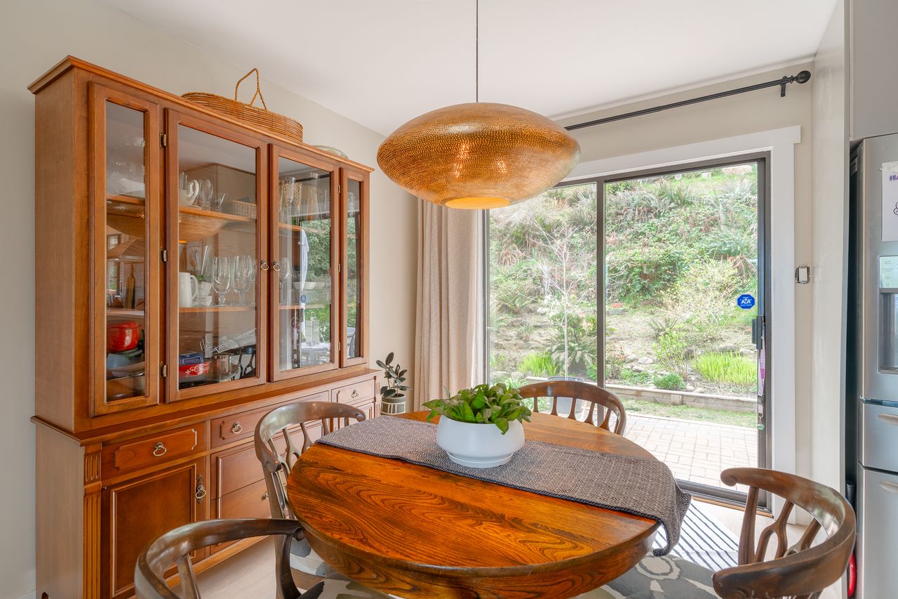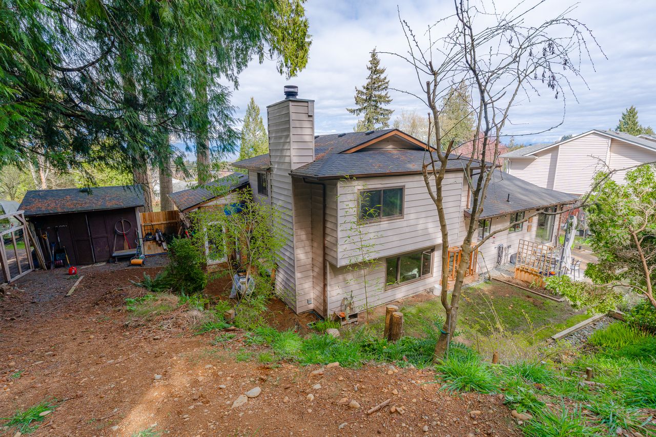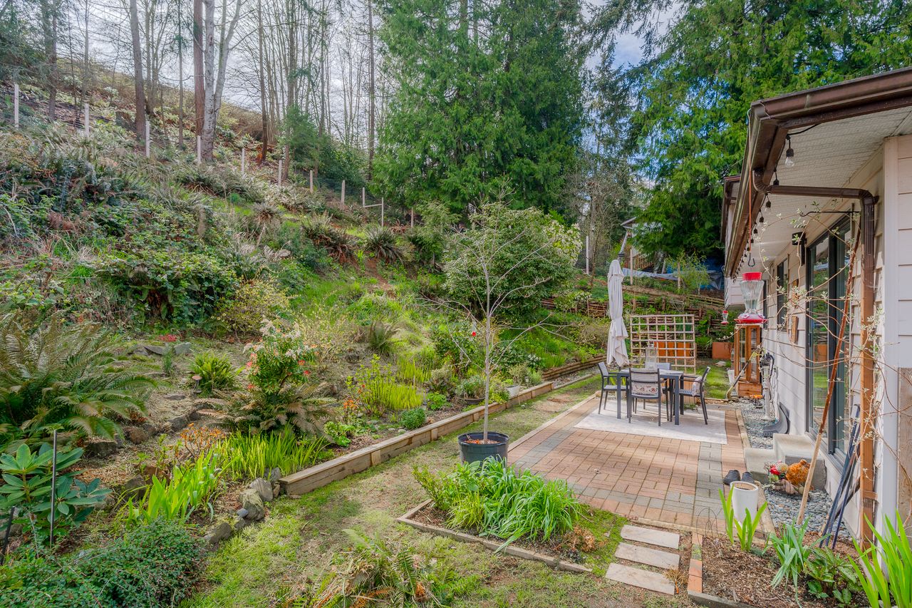 Outside, the backyard feels like a private retreat, with a hillside backdrop creating a peaceful, sheltered setting for relaxing or hosting friends. A shed provides storage, there is lots of room to park, and potential to customize the outdoor spaces to your lifestyle.