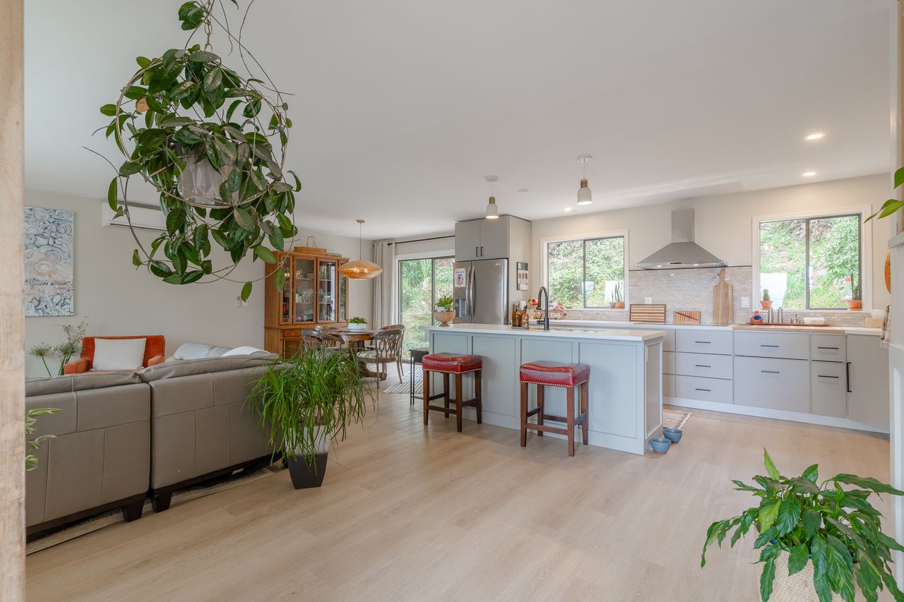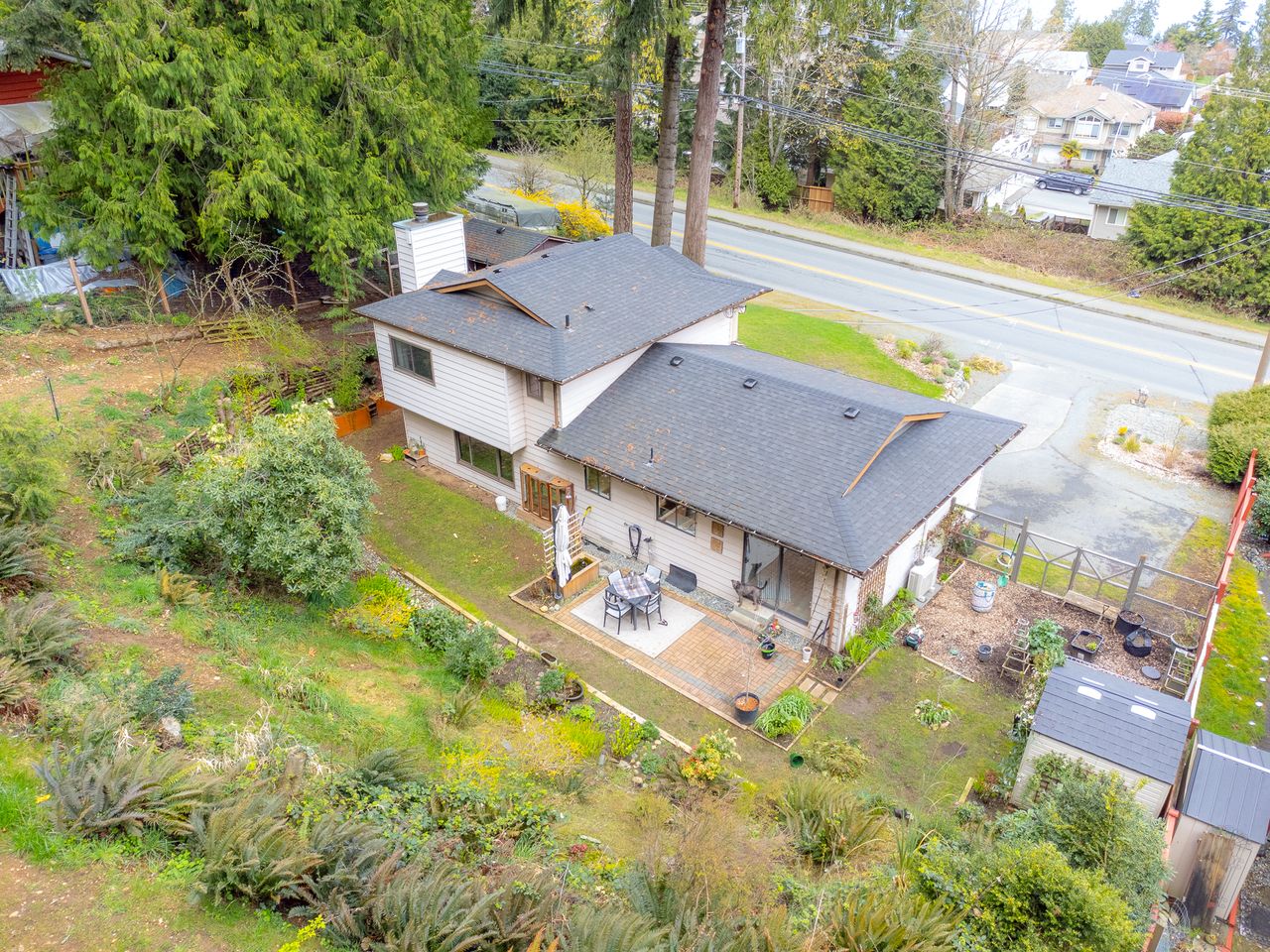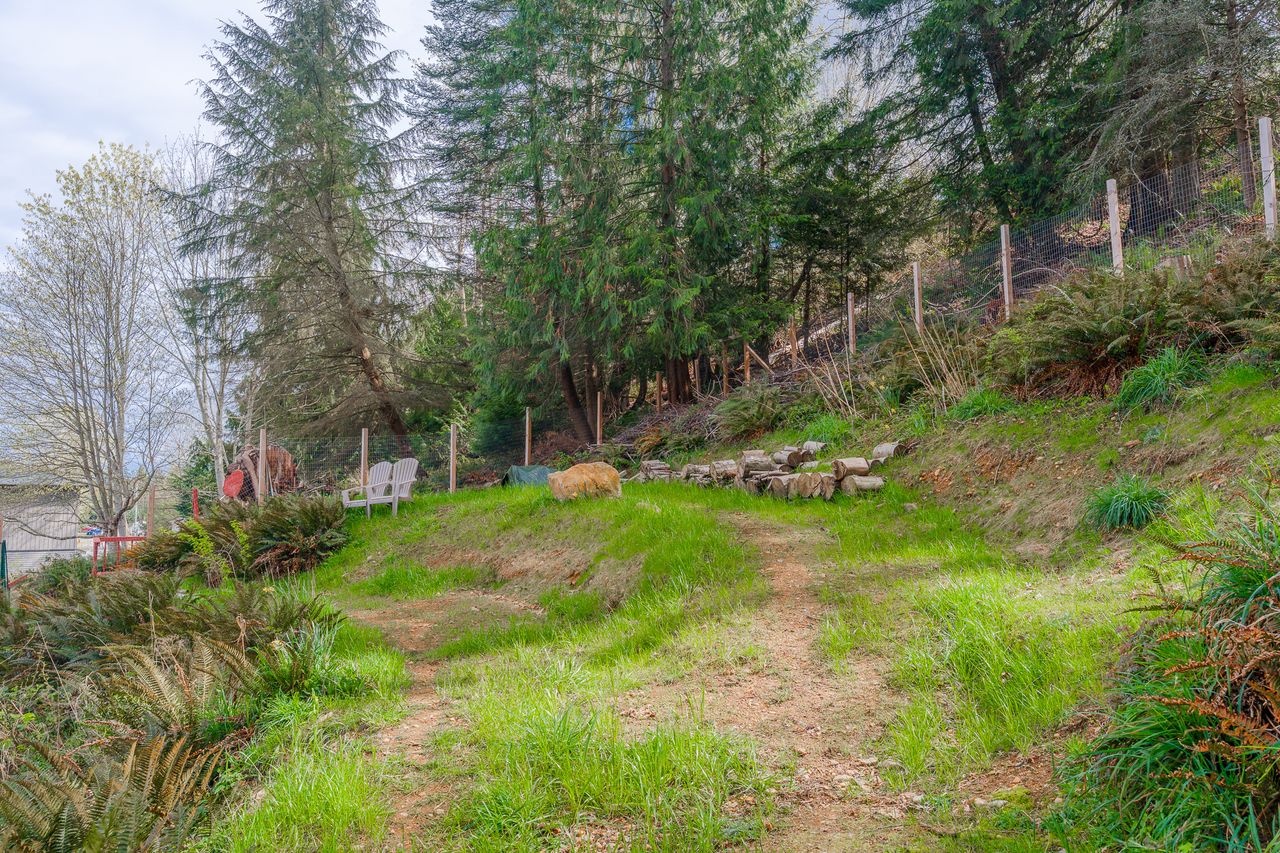 Outside, the backyard feels like a private retreat, with a hillside backdrop creating a peaceful, sheltered setting for relaxing or hosting friends. A shed provides storage, there is lots of room to park, and potential to customize the outdoor spaces to your lifestyle.