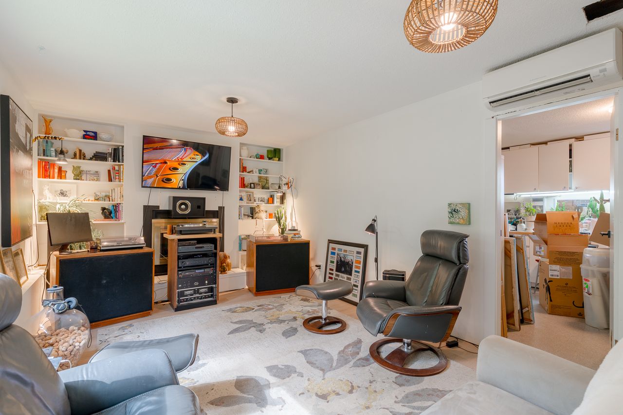 A few steps down from the kitchen, a cozy family room offers a place to unwind, complete with a fireplace and built‑in bookshelves. From here, you’ll find a spacious laundry/multipurpose room and access to the carport.