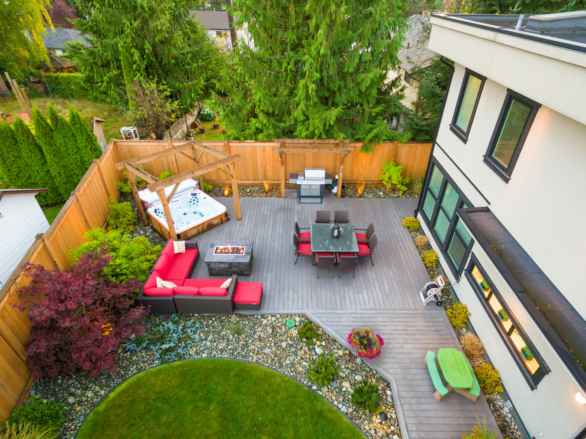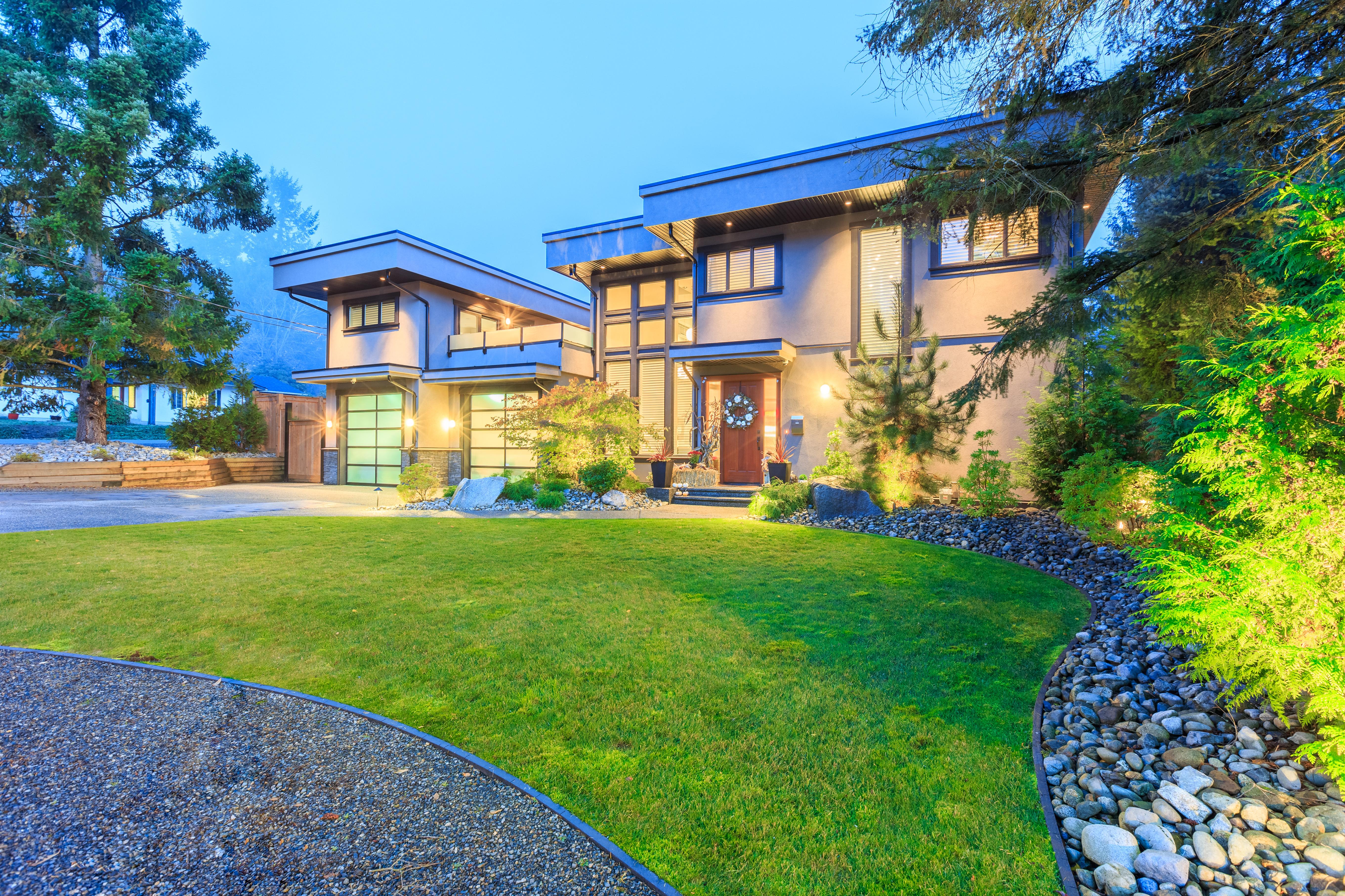 You will be impressed by the striking exterior of the home with its linear design, flat roof and expansive windows complemented by low maintenance professional landscaping with river rock front borders that pave the way to the main entrance of the residence. The fully fenced, secure backyard provides a private oasis that includes a grass area with ample room for play time and a sizeable deck that extends the interior living space and offers the perfect entertaining venue complete with a natural gas firepit & bbq and a hot tub.