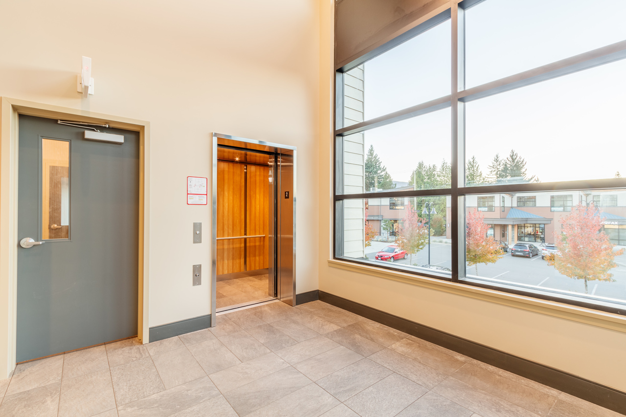 Ideally situated as a corner unit on the second level of Building B with exposure to the Island Highway on the southeast corner of the development, unit 203 offers 2,159 sqft. of Class A office space. The modern design features vaulted ceilings and tastefully incorporates a number of large windows, resulting in an abundance of natural light and an impressive, inviting office for clients. Rarely offered in Nanaimo, the strata owners in Building B are sure to appreciate having 3 designated secured, underground parking stalls, with ample customer parking directly in front of the building. The unit is conveniently accessed via elevator from both the underground parking and street-level entrance.