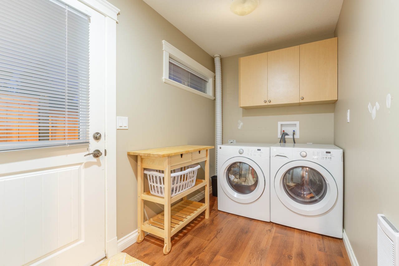 The lower level offers laundry facilities for the main residence along with access to the backyard, as well as the equally well appointed and tastefully finished suite complete with its own laundry facilities and separate entrance.