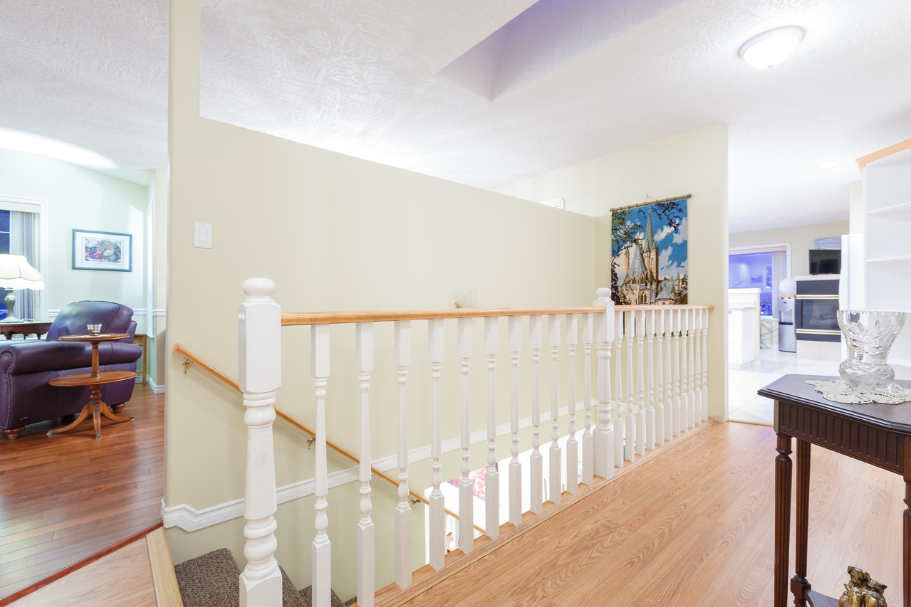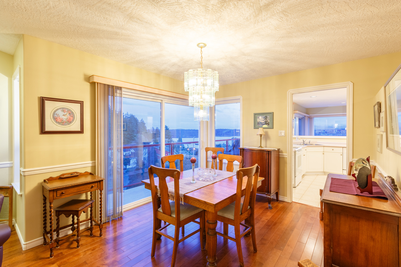 Situated on a 0.19 acre lot this 2,871 sqft, 4 bed + den, 3 bath home offers a functional layout that is well suited to families of all ages. Upon entering you will be struck by the welcoming ground floor foyer enticing you upstairs to the formal living and dining areas with a new gas fireplace and views of the Bay and Newcastle Island, enhanced from the deck accessed off the dining room. The heart of the home is truly the open concept, and yet cozy, kitchen, eating nook and family room with a wall of windows to take in the captivating unimpeded views and two sliding doors leading to the 702 sqft wraparound deck where you will easily picture yourself soaking up the sun, hosting BBQs on a summer’s evening, or watching the ferries and seaplanes come and go. A three-sided gas fireplace provides spatial division and the ability to enjoy the ambiance it creates from all points within the space. The master suite is accessed from this area and offers Bay and City views from its private corner of the wrap around deck well situated for your morning coffee or for unwinding at the end of a busy day, with dual closets and a 4-piece ensuite with a skylight that provides an abundance of natural light completing the suite. Two further bedrooms and a bright, freshly painted 4-piece bathroom with a skylight and hookups for upstairs laundry facilities round off the well appointed main floor.
