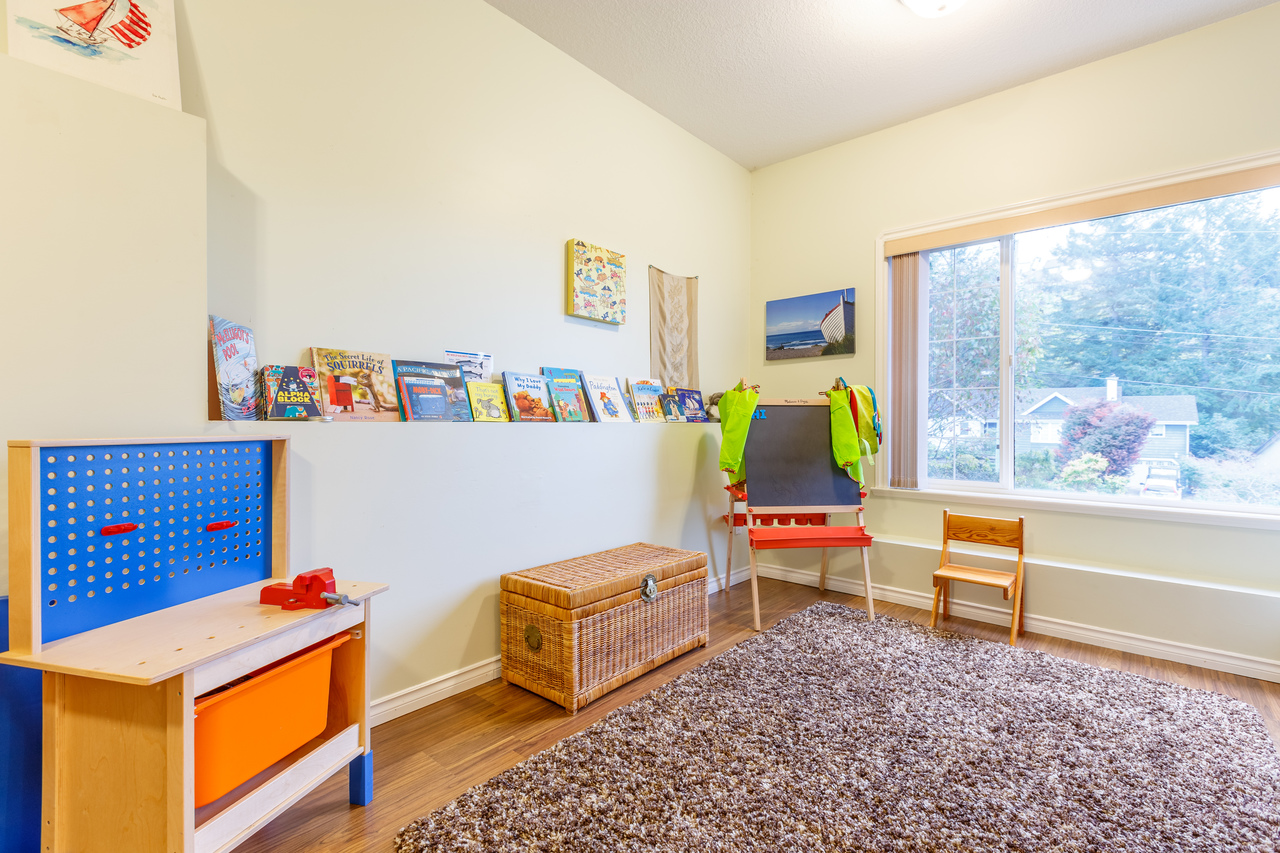 Downstairs offers a true sense of space with 9’ ceilings and additional living areas to accommodate larger families and guests, featuring a generous-sized rec room just off the main foyer as the perfect gathering spot for family entertainment and activities; a large laundry room providing endless storage options; a 4th bedroom with Bay and City views, and a 4-piece bathroom, while the den has its own exterior door with easy access to the side gate and driveway, making this ideal for a home based business or office.