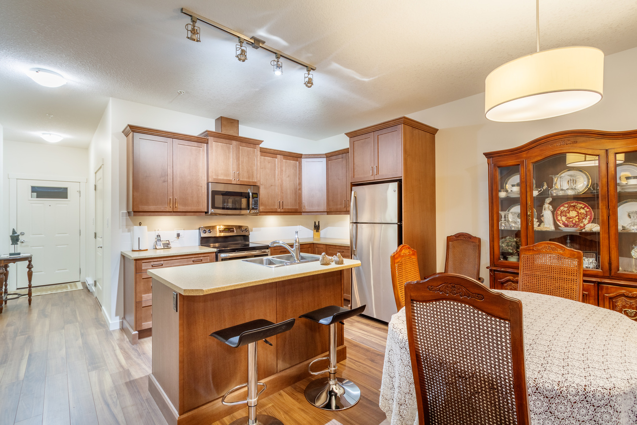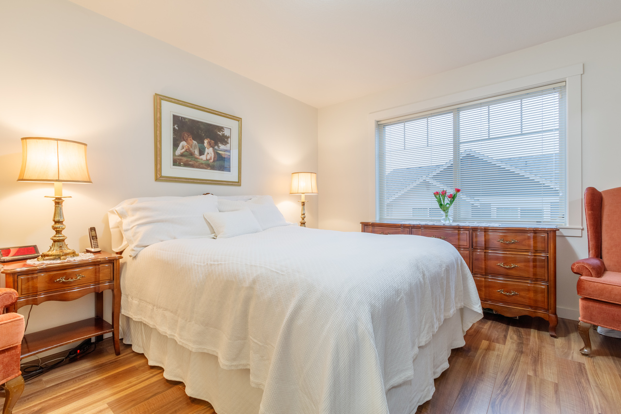 As you enter this 3 bed, 3 bath 1,328 sqft. home you’ll be drawn in by the open concept main floor featuring 9’ ceilings that evoke a real sense of space, and by the tasteful design and quality finishes throughout. The modern kitchen, with shaker-style custom cabinetry and stainless steel appliances, features an island that houses the sink and dishwasher and which provides an eating area with bar stools, ideal for grabbing a quick snack, while the spacious dining area is as well suited to a family gathering as it is to an intimate dinner. Flowing from the dining space is the comfortable living area, overlooking the garden and leading to the patio, this is the perfect venue to entertain or to enjoy a cozy evening. A powder room conveniently located in the entrance, a coat closet, handy understairs storage and access to the single-car garage, complete the main floor.