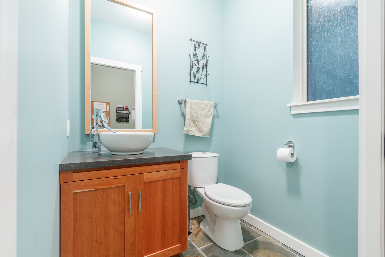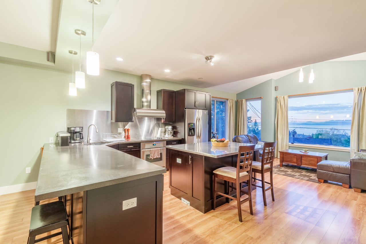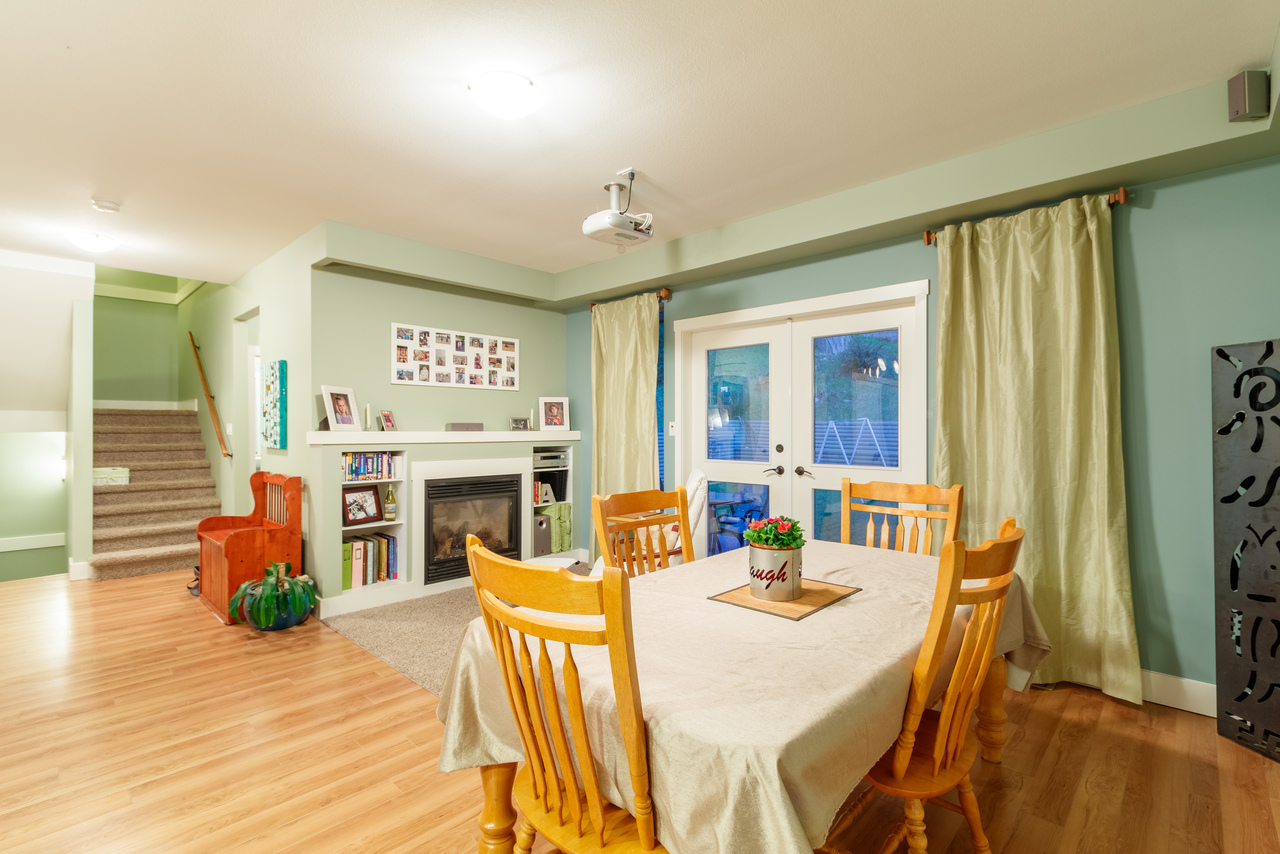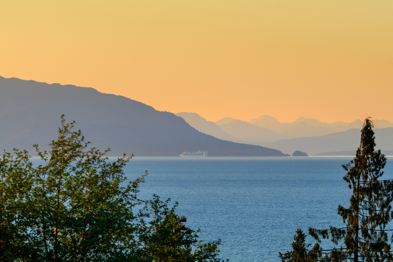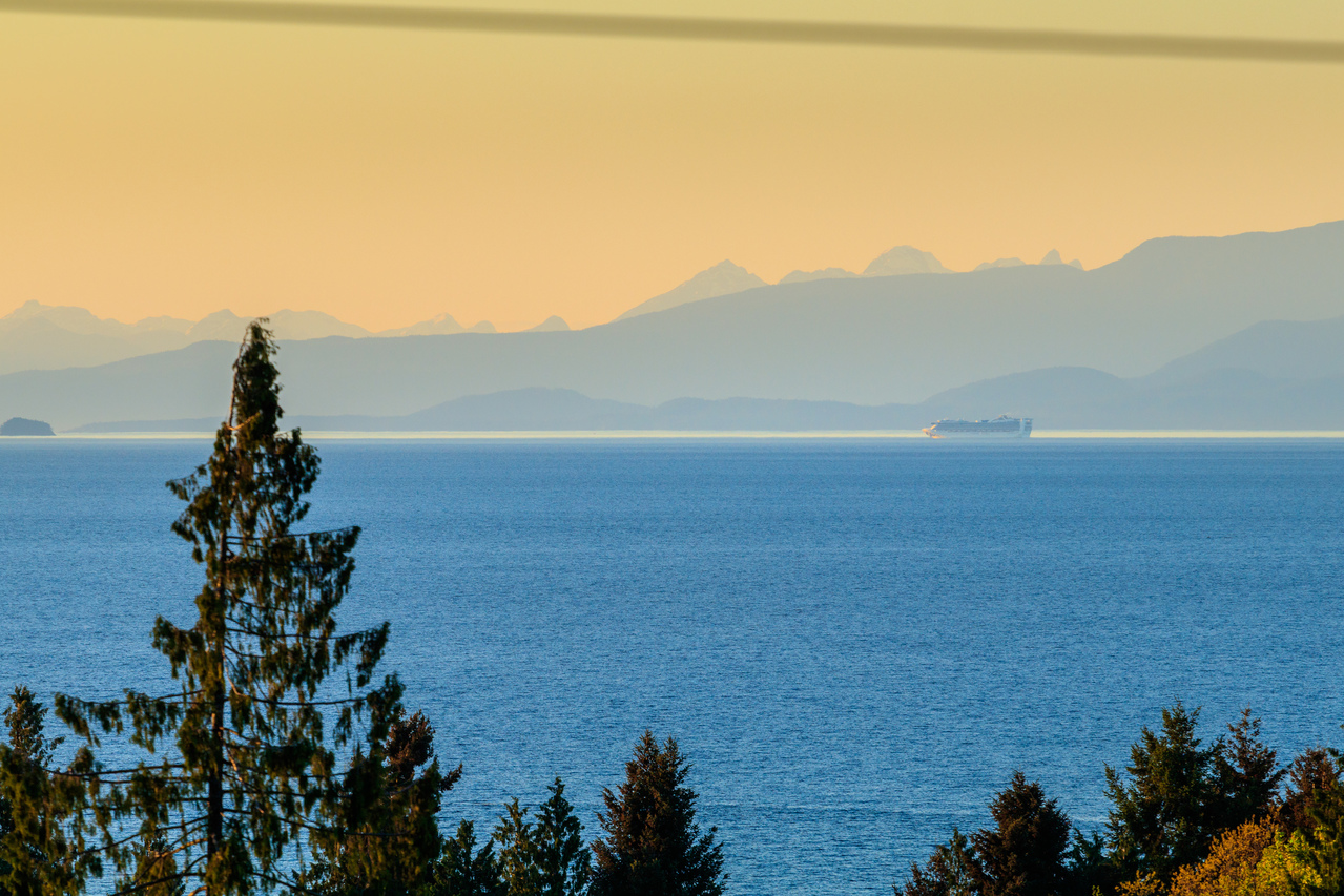 Once inside you will appreciate the functional, well-appointed floor plan that begins with the open concept dining space to the right of the entry featuring 11’ vaulted ceilings and large picture windows from which to take in the views of the Georgia Strait and coastal mountains. The well-designed kitchen is the heart of the home featuring a spacious pantry, a large island, two separate eating bars, stainless steel appliances, and polished concrete counters that are sure to impress the chef in the family. Towards the rear of the space is a family room complete with a gas fireplace, creating the perfect ambiance for family time or movie night, and French doors leading to the walkout patio & back garden with a treed backdrop & a tree fort that is sure to keep the kids amused. To the left of the main entrance is a living room that boasts a deck from which to enjoy the ocean view, & which is connected to a den/home office overlooking the back garden. A 2-piece bathroom, mudroom leading to the back patio, and stairs down to the lower level round off this main floor.