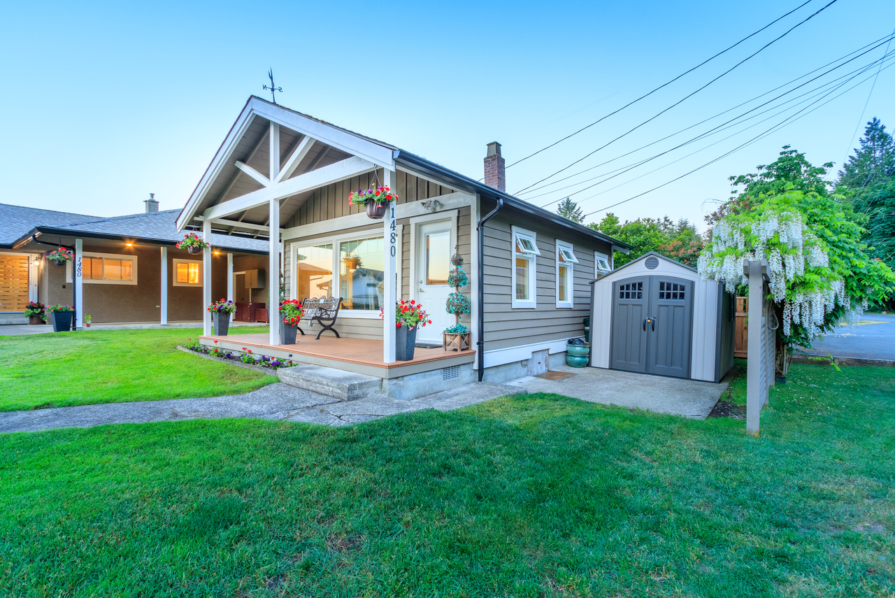 The low maintenance, level lot with in-ground sprinkler system offers ample parking and a single carport, with a spacious storage room and large heated crawl space available to store all of your extra belongings, particularly appealing if downsizing. A major bonus to this property is the 404 sqft cottage just steps from the main home, which has its own living area, kitchen, bedroom, 3-piece bathroom, and covered deck and would be perfect for house guests or extended family that are sure to visit, as well as an opportunity to secure some passive income, should you desire to do so.