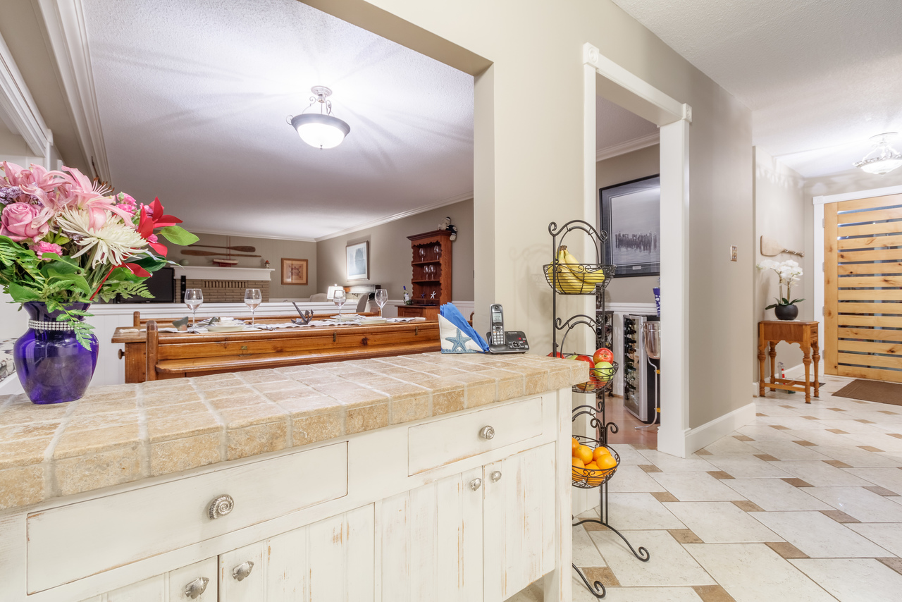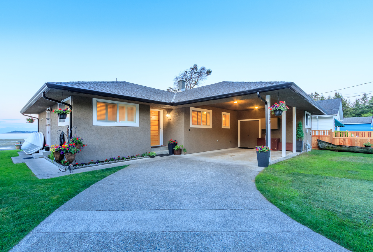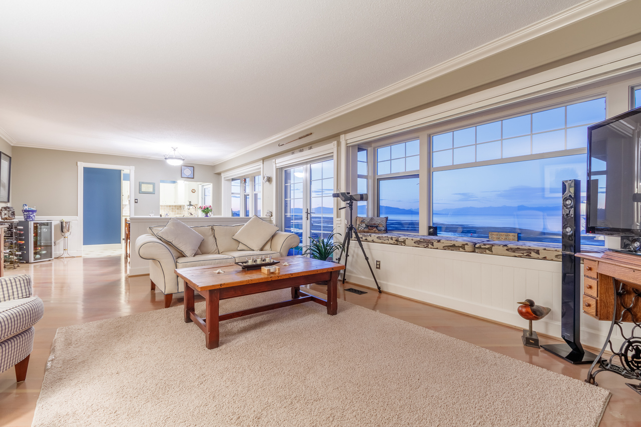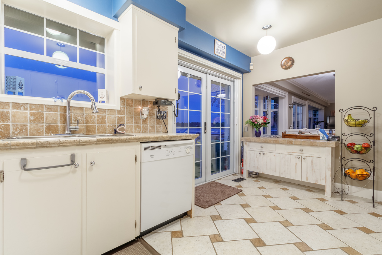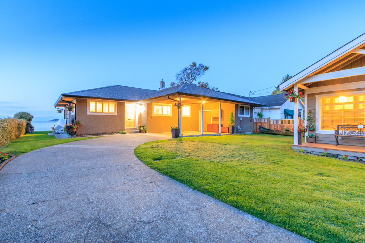 Offering 1,349 sqft of living space on one convenient level, the main residence features 3 bedrooms and 2 bathrooms and boasts stunning unobstructed, panoramic mountain and ocean views showcased through the large windows in the living room, dining area, and kitchen bringing the outdoors in and providing the ideal backdrop for an intimate meal or a family gathering with the built-in fireplace creating the perfect atmosphere on a cooler evening. The master and second bedroom along with a 3-piece bathroom are to the right of the main entrance while the third bedroom or den, laundry facilities, and a 3-piece bathroom are to the left and round off the interior of this home.