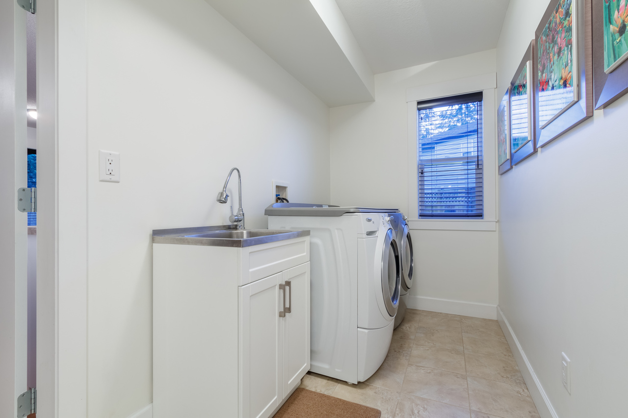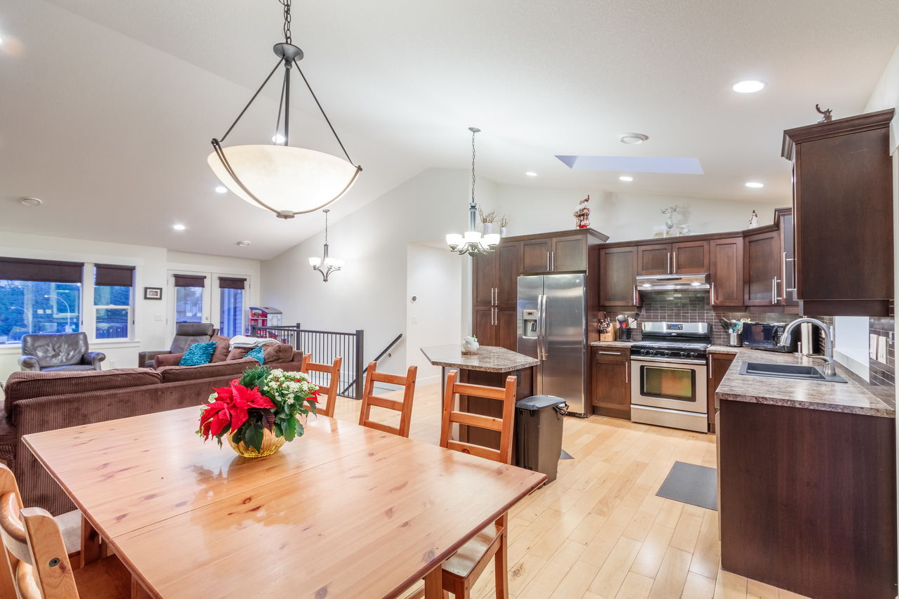 Downstairs boasts a den and laundry room reserved for the main residence, while the lower level legal suite offers a functional floor plan with its own entrance, open concept living/kitchen area, 2 bedrooms, a 4-piece bathroom, laundry facilities, and access to a covered deck that overlooks the private backyard.