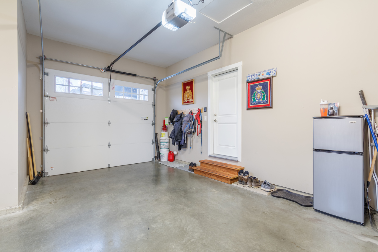To the right of the main entrance is the bedroom area, with the master suite offering a walk-in closet and a contemporary 3-piece ensuite while two further bedrooms, the main 4-piece bathroom, and a laundry area that leads to the single car garage, round off the living space.