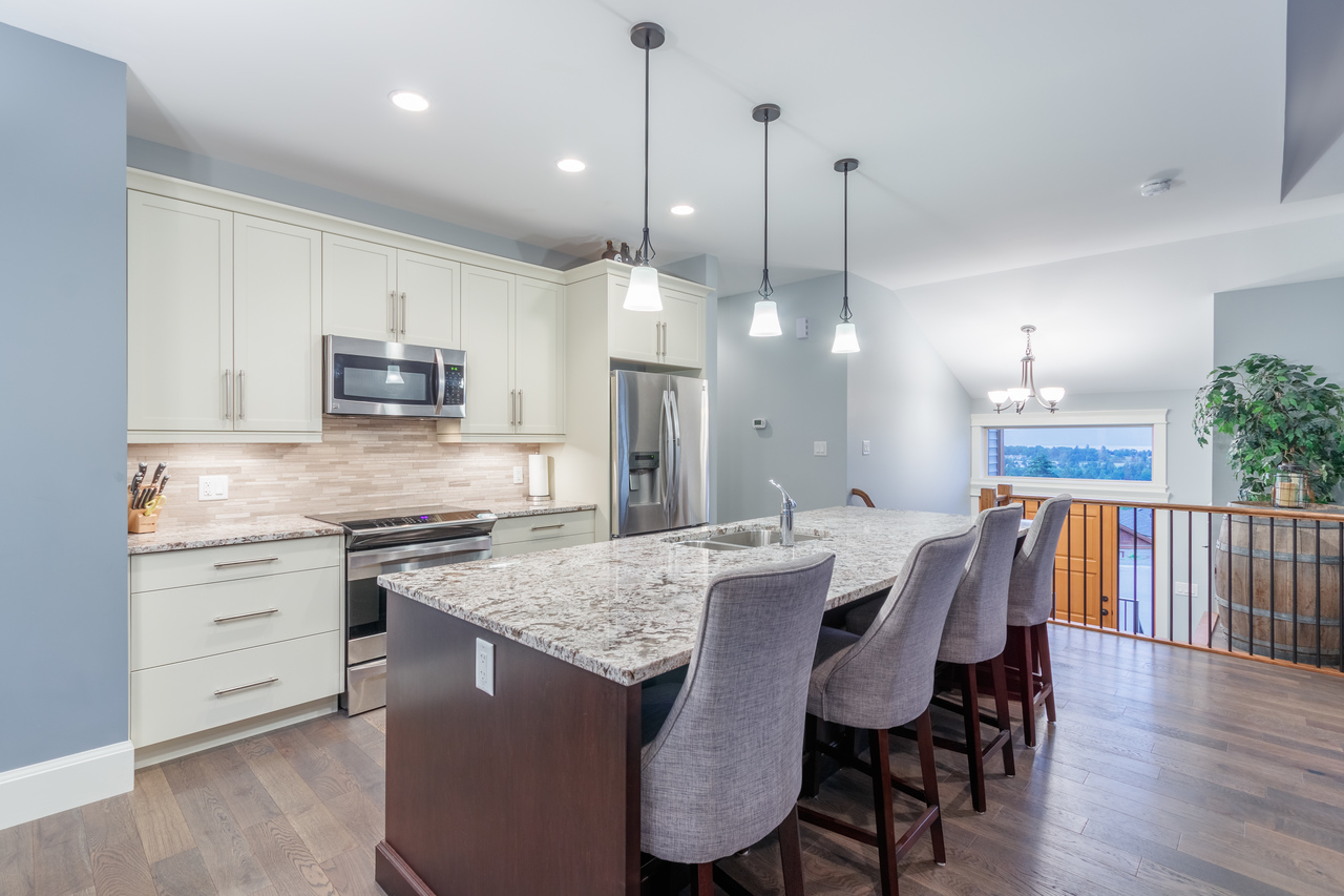 The functional floor plan offers 2,257 sqft of tastefully finished, contemporary living space with 4 bedrooms, 3 bathrooms, and views over the city and out to the ocean and mountains beyond.