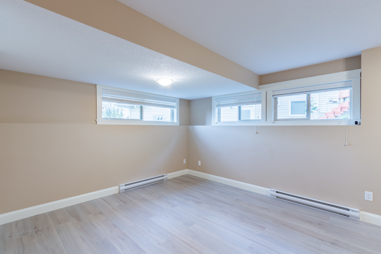 The lower level offers a well-appointed legal 1-bedroom suite with contemporary finishes, a spacious living space, and a full kitchen with stainless steel appliances and granite counters, a 4-piece bathroom, and separate laundry facilities, meter, and entrance.